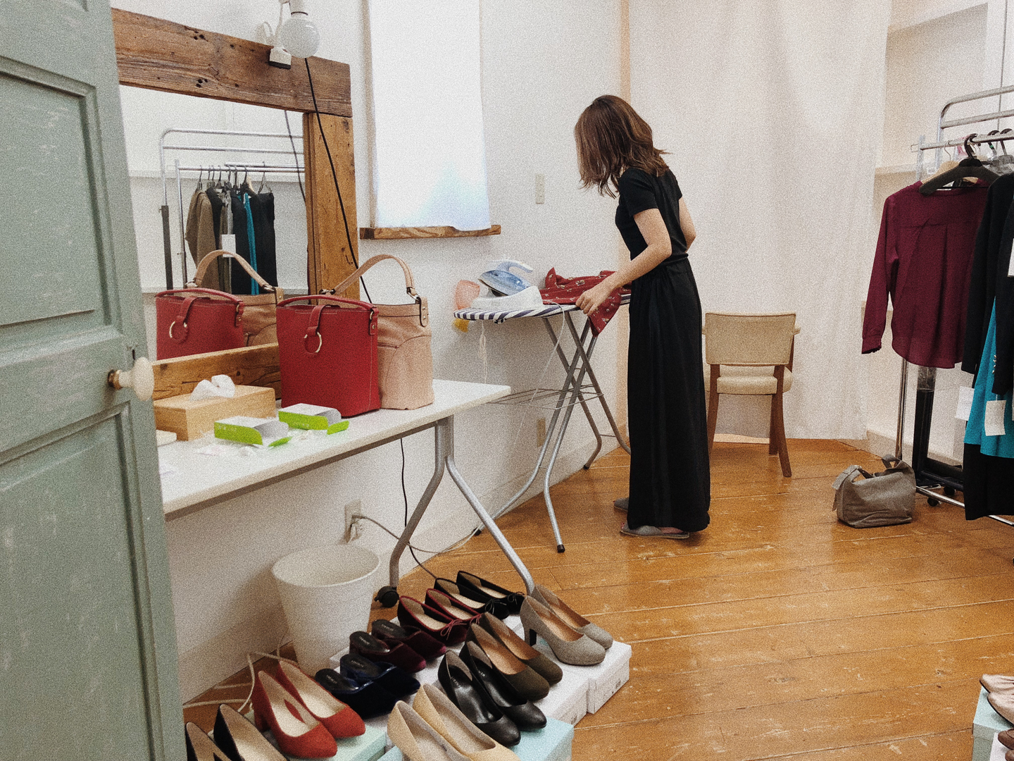 お洋服は丁寧にアイロンをかけて、ハンガーラックに並べていきます。
