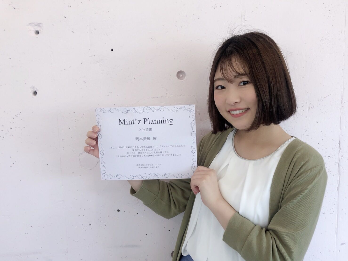 入社証書とともに、記念に1枚撮って頂きました♪