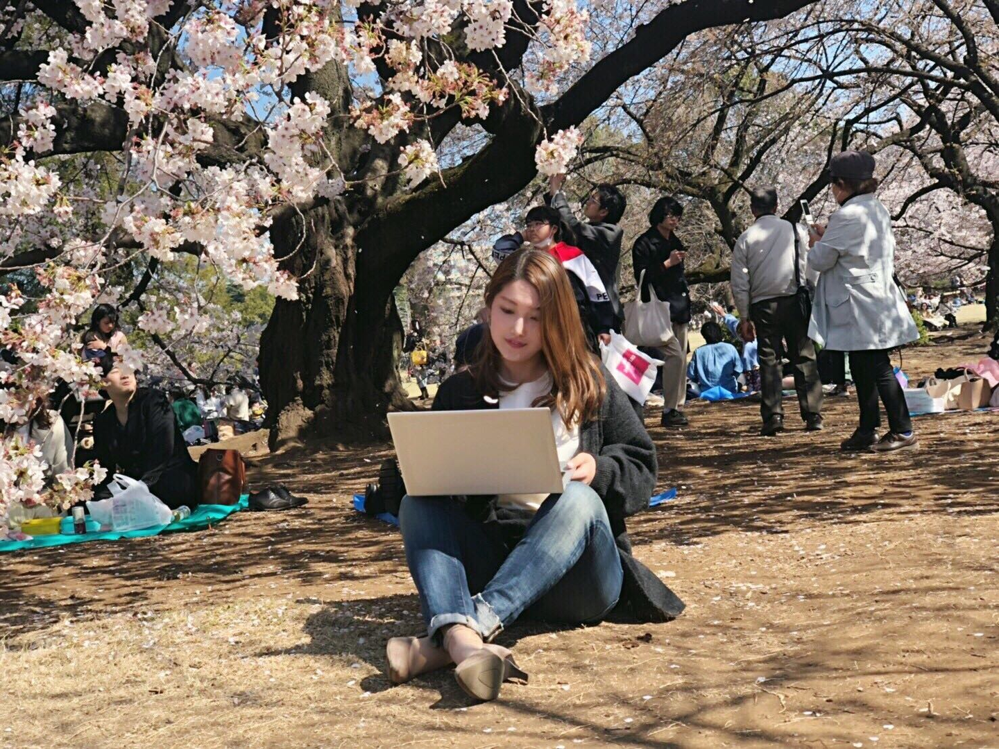 という事で弊社の目の前にある新宿御苑でリモートワークするメンバーも♩