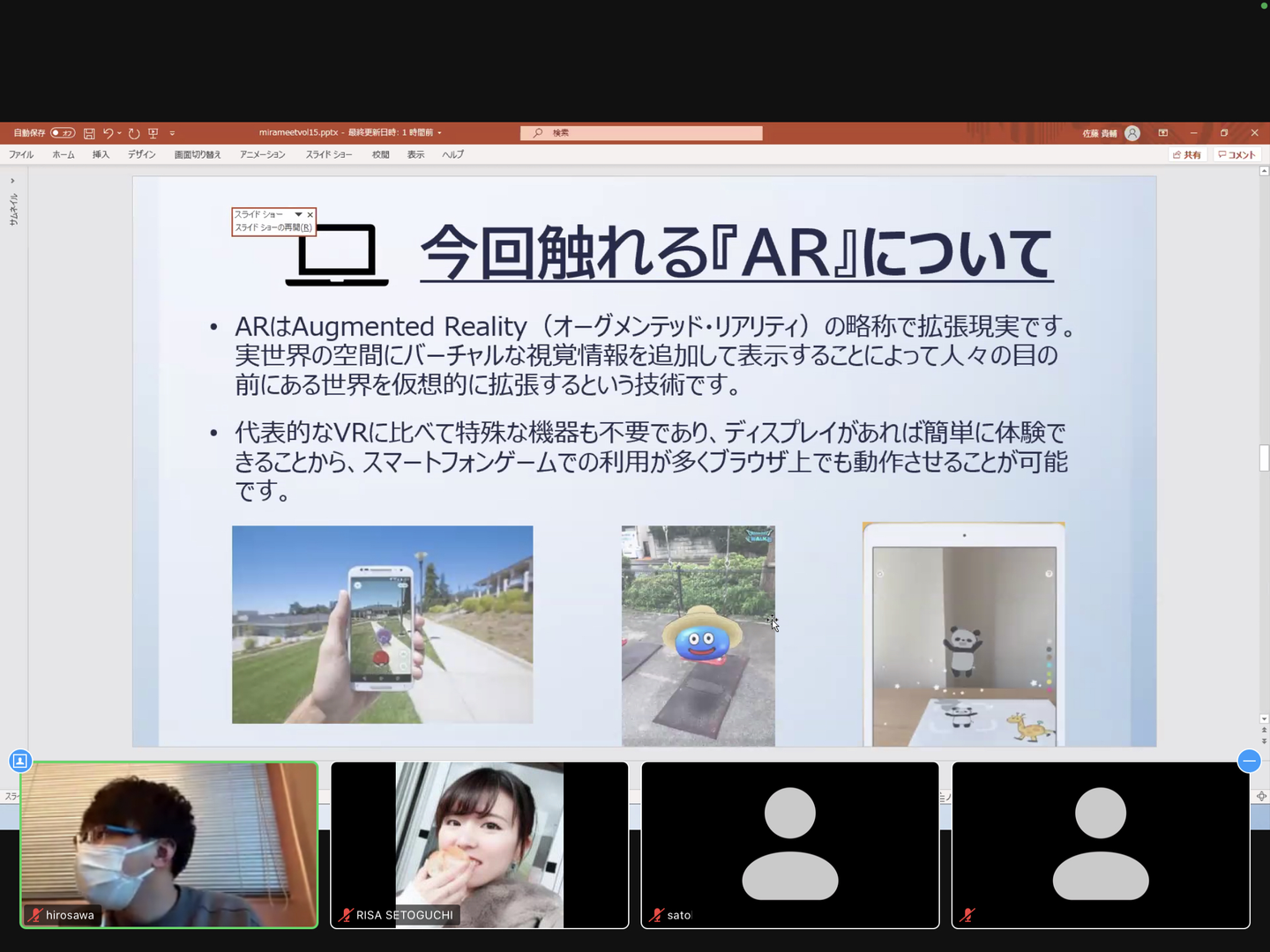 今回はWebARがテーマなので、ARに特化した説明となってました!