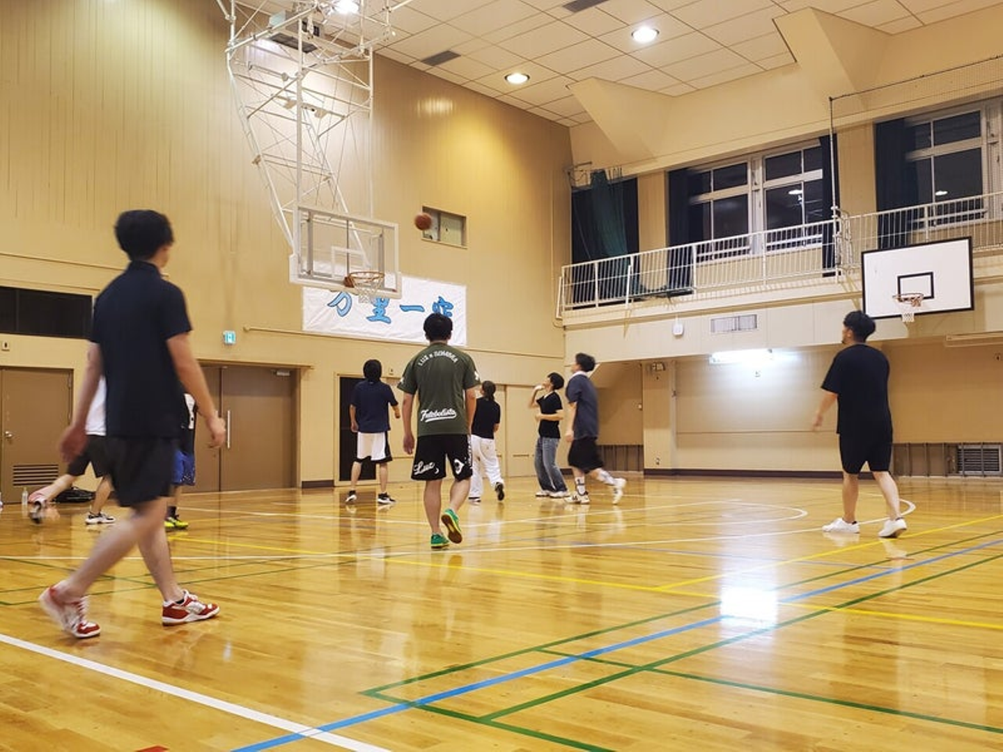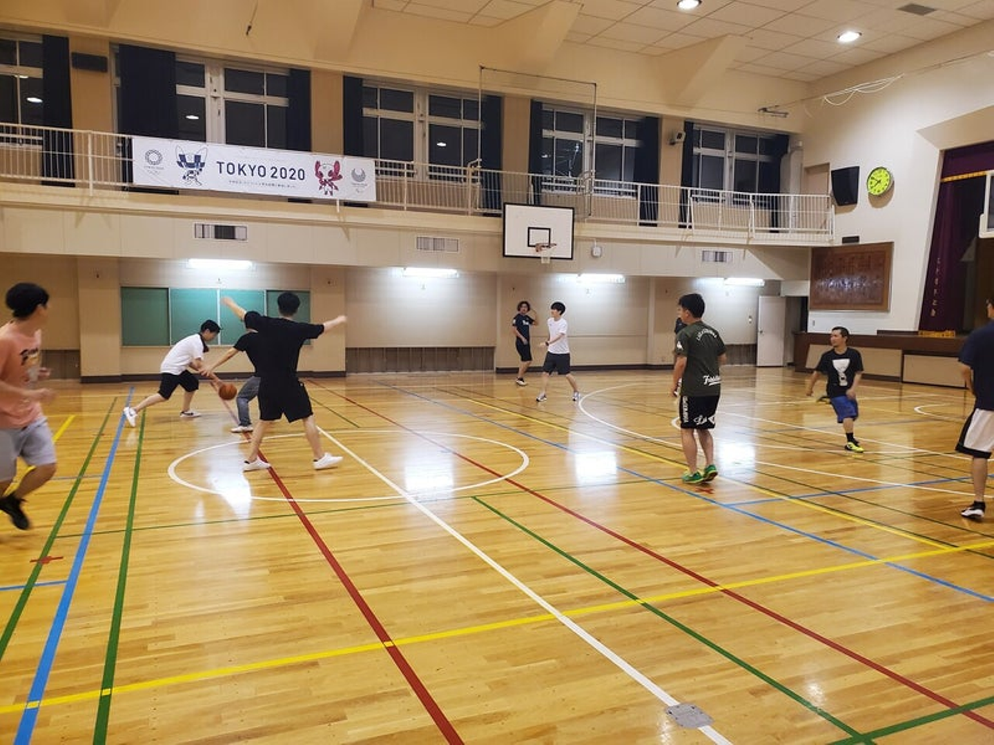 その後、2チームに分かれて、体育館全面を使って試合をしました!