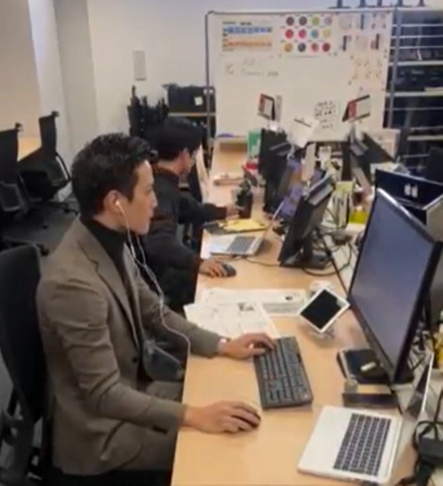先に出勤している先輩トレーニーに(心の中で)挨拶をします。リアルでは話しかけられないほど真剣な表情のトレーニーたちに、そっとエールを送るのがルーティンです。