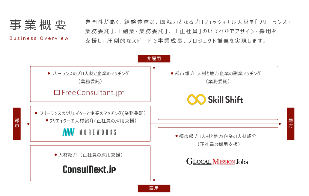 MWSは、プロフェッショナル人材事業を主軸に、そのデータベースやノウハウ、ネットワークを活用したコンサルティング、実践型リスキリング、オープンイノベーション、地方創生、サステナビリティ経営支援の事業など、多様な事業を展開しています。