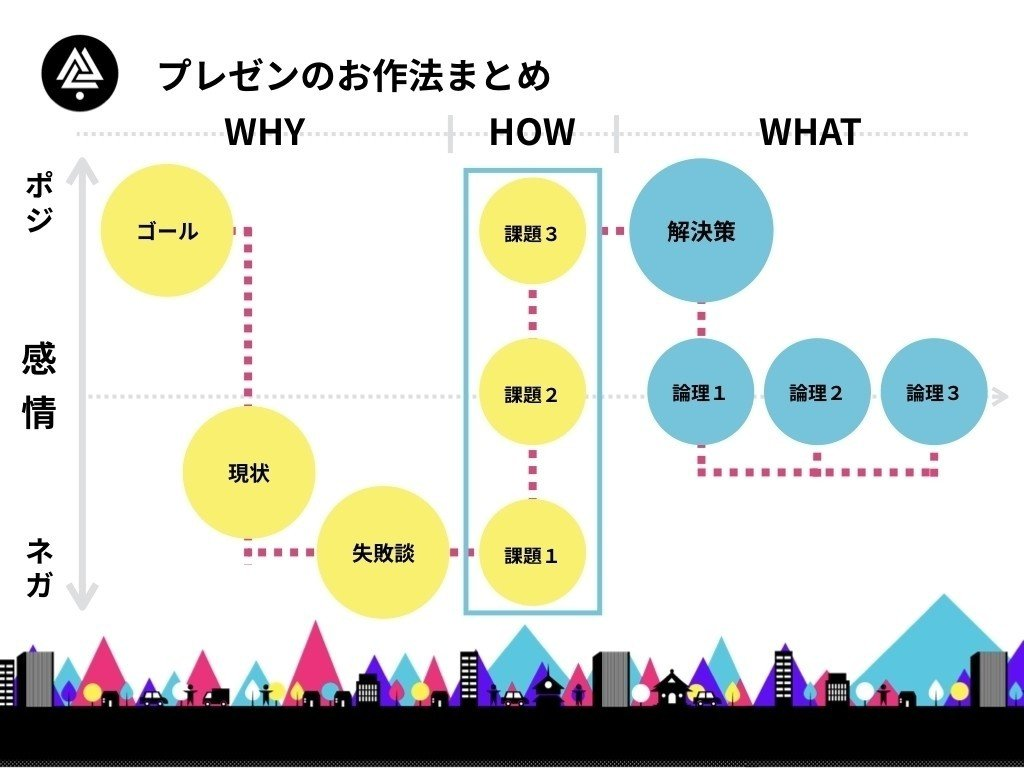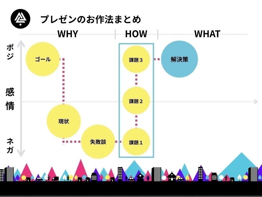 この図の通りにプレゼンのストーリーを構成し、そのまま声に出して伝えるだけ。