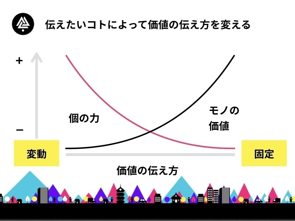 モノの価値を高めるためには、個の力をおさえ、価値の伝え方を統一して固定化するという方法が必要になります。