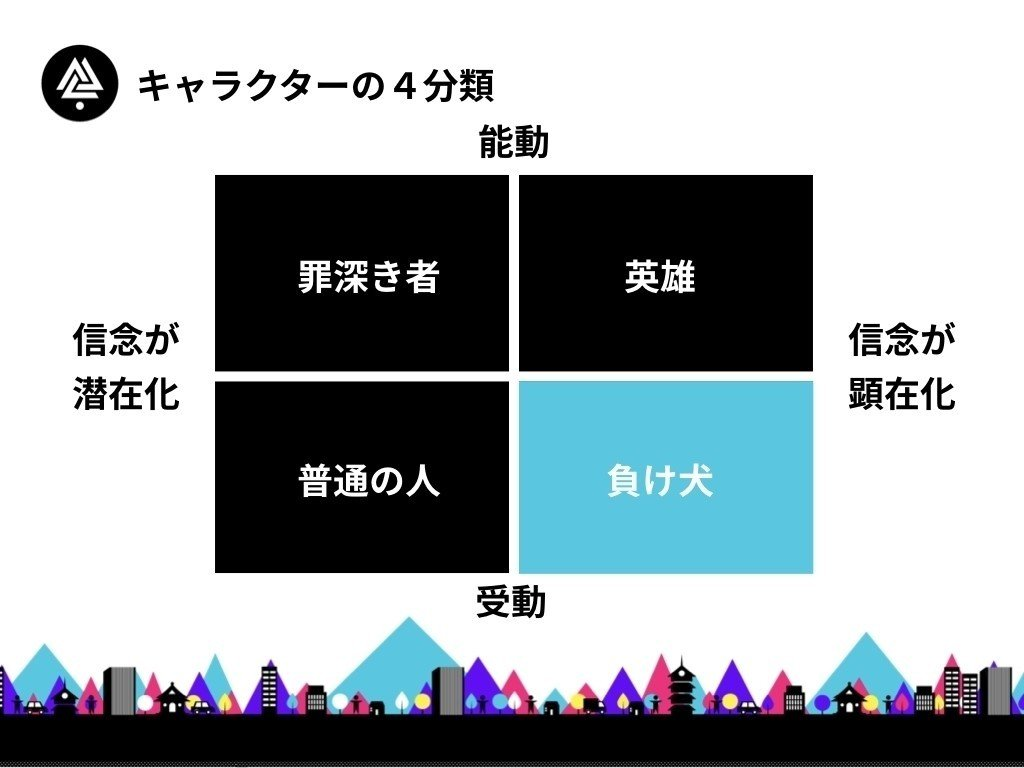 失敗談のキーワードは、聴衆よりも下位に立つということ。負け犬型の主人公になることで、生まれる同情と緊迫感。
