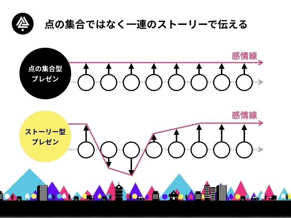 1.プレゼンを点の集合ではなくストーリーで構成すること