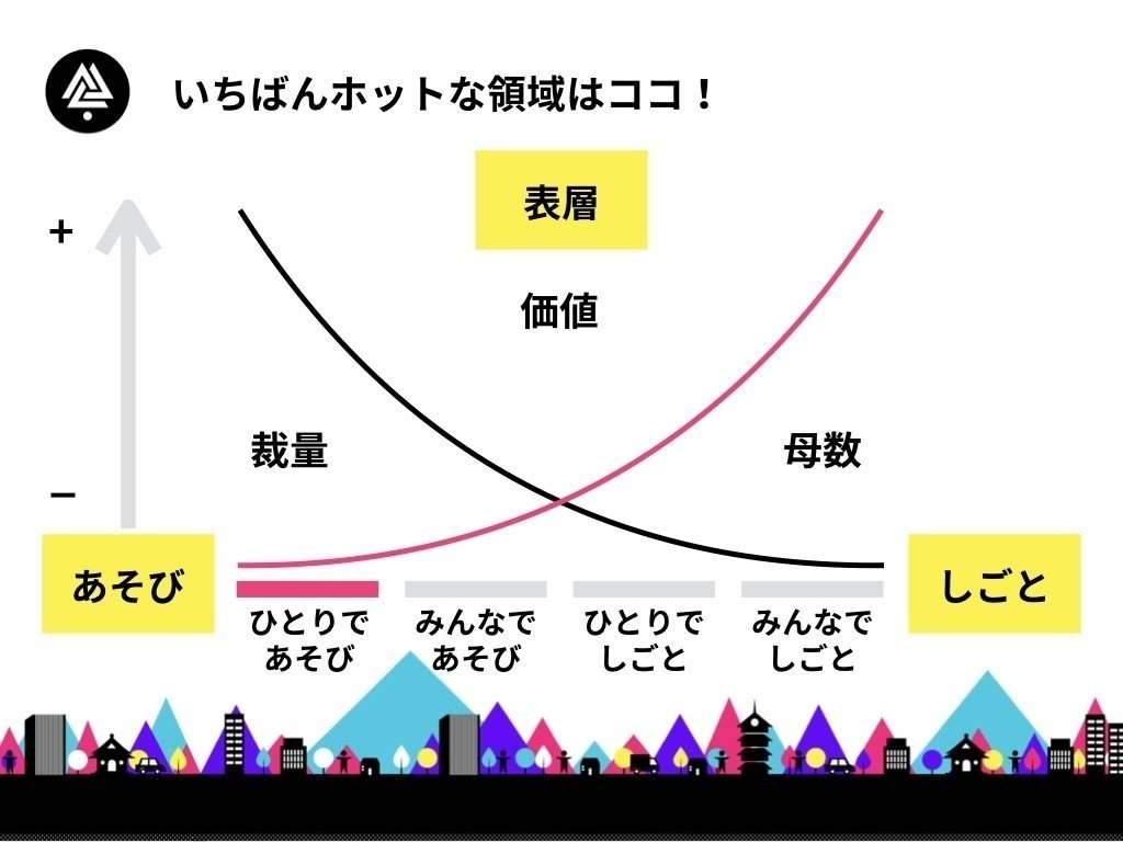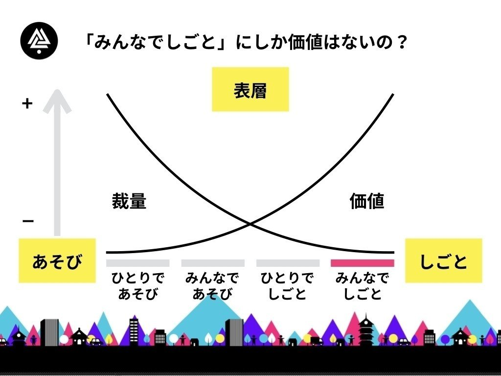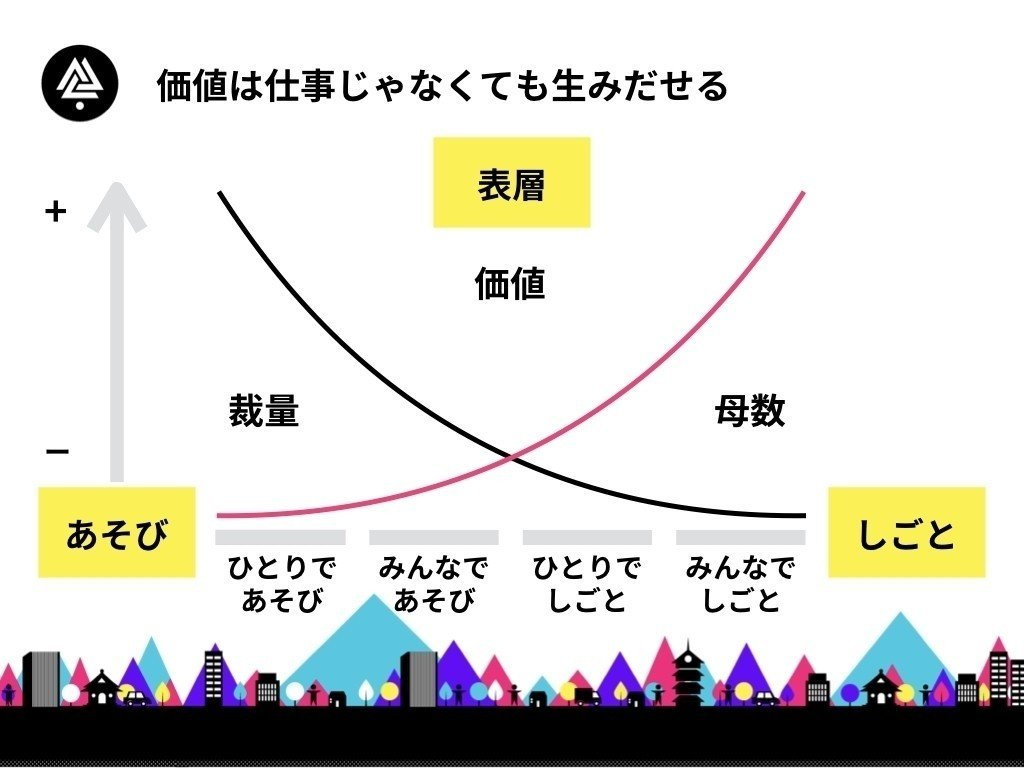 そうです。価値と思い込んでたものは母数に変化しています。そして、価値は「あそび」にも「しごと」にも価値は等しく全体的にあります。