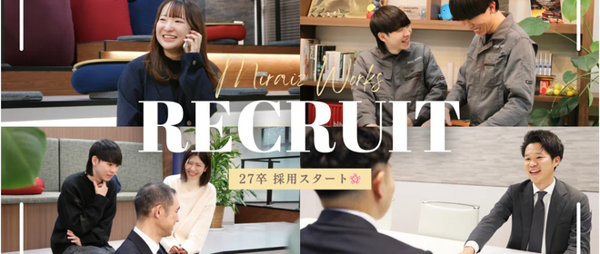 私たちミライズワークスは、オフィスづくりを通して”想像以上の感動を”与えられる オフィスのプロフェッショナルチームを目指します。 人々は、人生の大半を仕事をしながらすごしています。 そんな「働く場」が気に入らないなんてつまらない・・・ 我々は働く場に"驚き""喜び""思いやり"といった感動を与えることで、 プロジェクトに関わるすべての人を幸せにしたいと考えます。 未来への想い 思いをカタチヘ カタチから驚きを。 さぁ、一緒に体感しませんか?