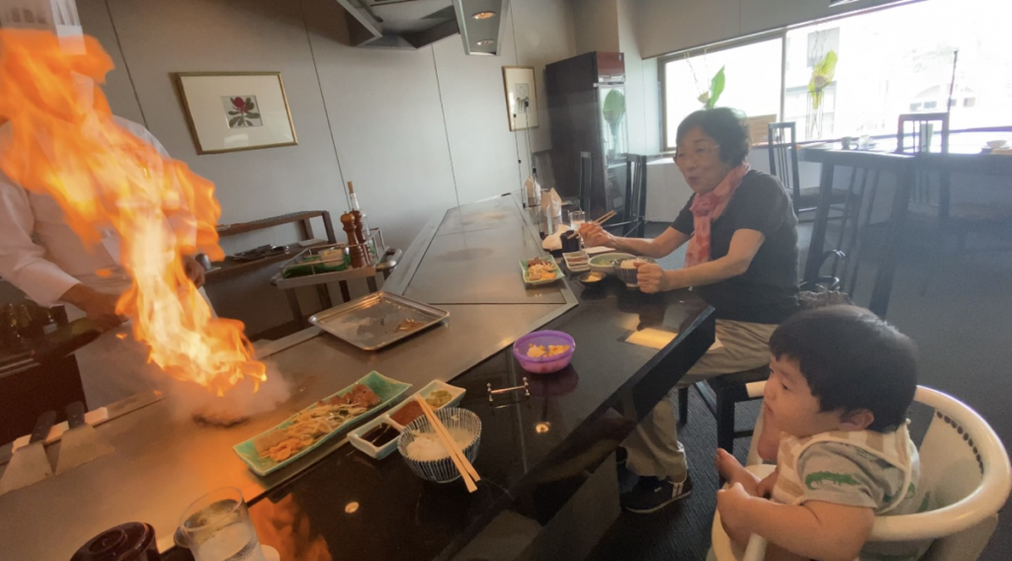 予約時間になり、おばあちゃんと一歳になる息子を連れて鉄板焼き屋さんへ。