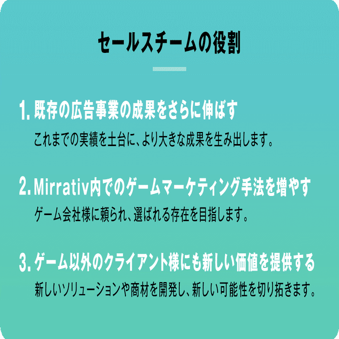 ――ミラティブにおける、セールスチームの役割を教えてください。