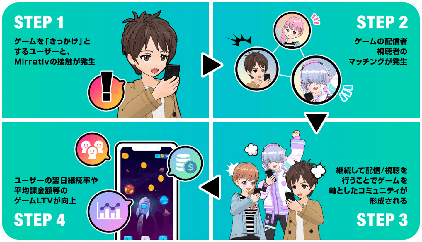 赤川:世の中にまだない価値を何度も作り出してきたのが、ミラティブの歴史です。例えばMirrativアプリxセールスであれば、配信を通じてコミュニティを盛り上げてゲームのLTV(ライフタイムバリュー)を伸ばすという、新しいマーケティング手法を生み出しました。