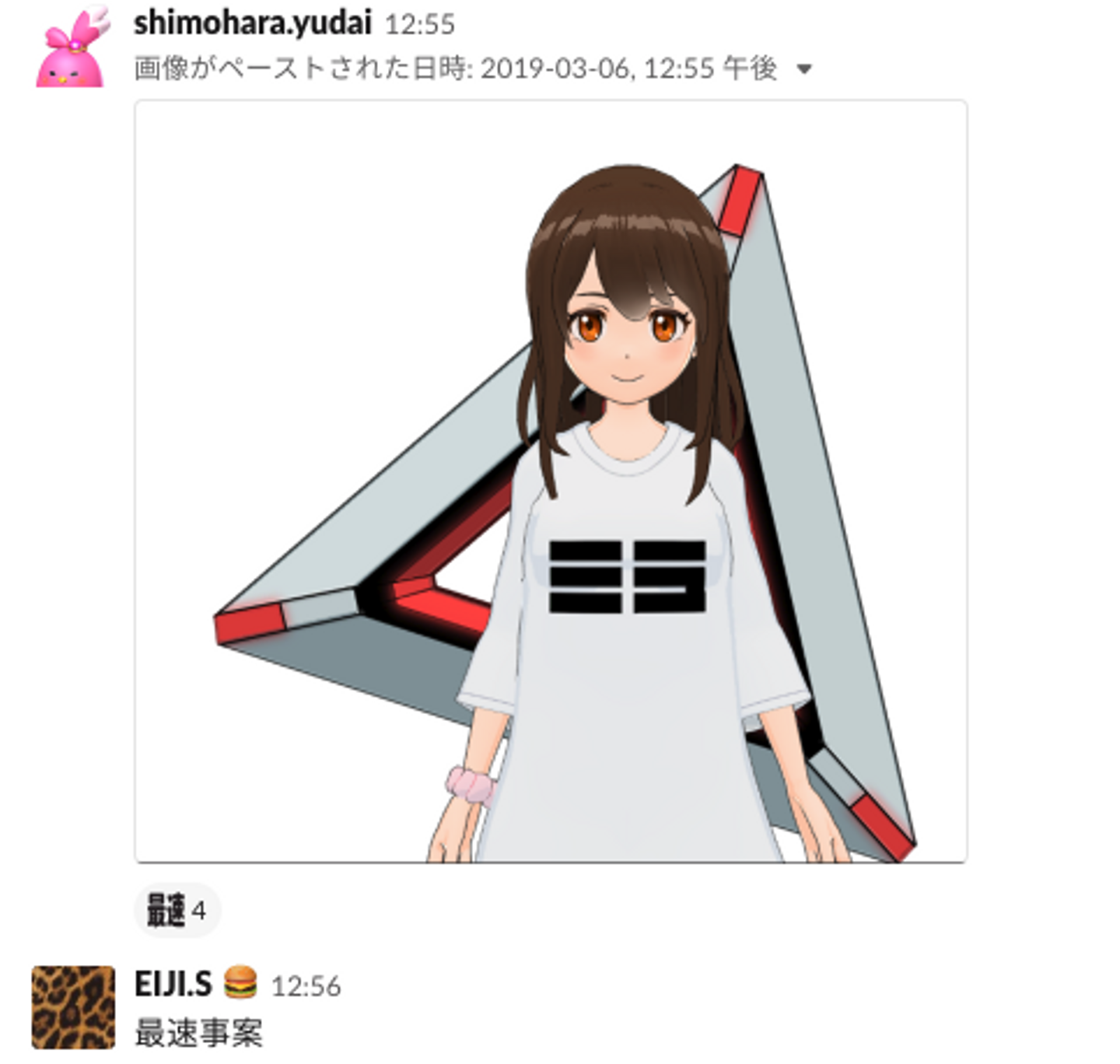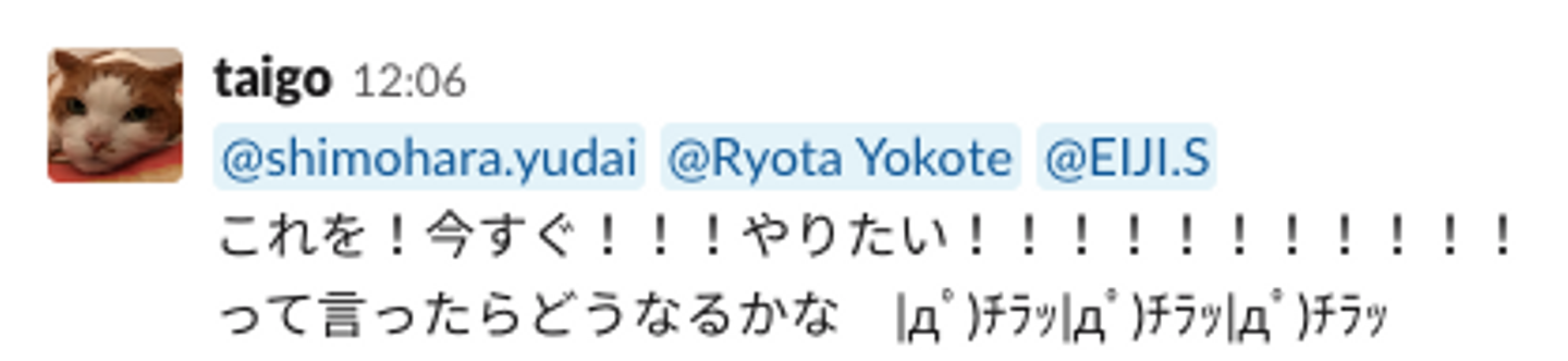 赤川のニュース共有が10:16。デザインのプロトタイプ完成が12:55。3時間もかかっていません。