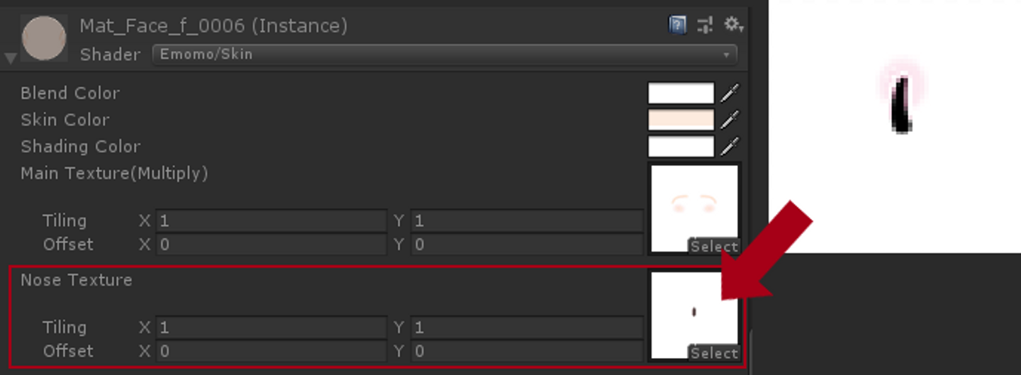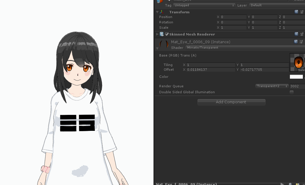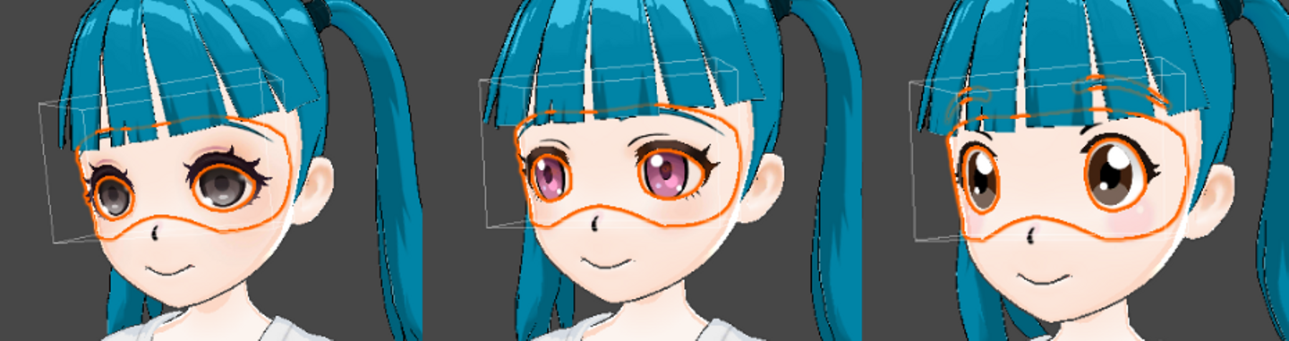 ▲別マテリアルで分けておくことにより、黒目テクスチャを変えて別の目にする、といったことも可能にしています