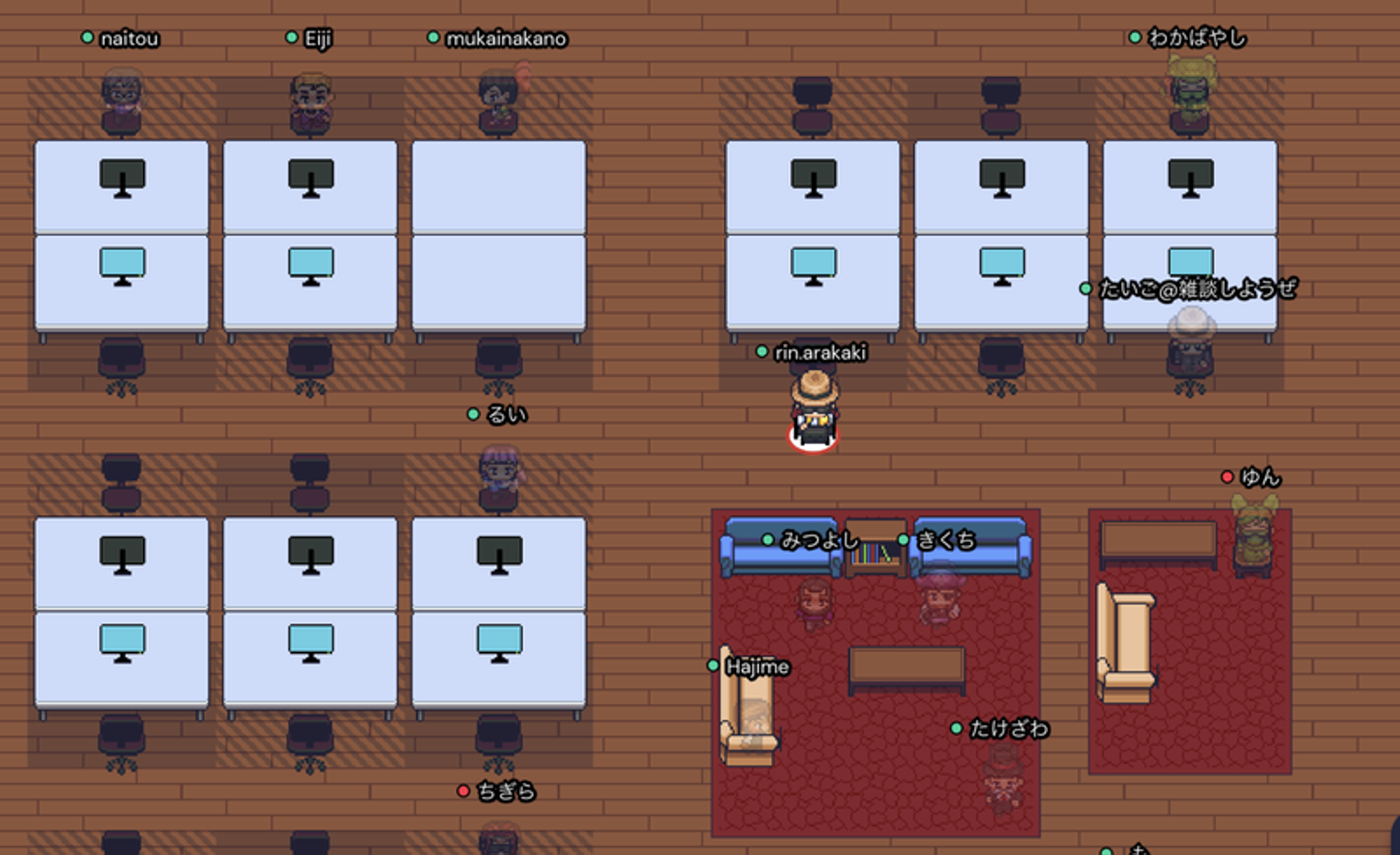 また、体制がフルリモートになってからは、Gatherというアバター型の会議室に常時接続しながらコミュニケーションをとっています。SlackやZoomも併用していますが、Gatherはより気軽に声をかけやすいので、リモートでの働きやすさを重視して導入しました。