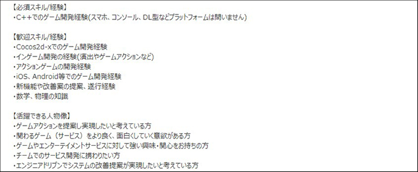 ━━なるほど。では歓迎スキルに「Cocos2d-xでのゲーム開発経験」とありますが、こちらはどの程度求められますか?