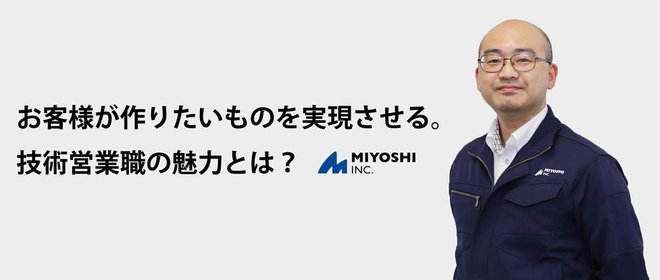 ミヨシではどんどん仕事を教えていくのでたくさんのスキルを身につけて若いうちから活躍してほしい。そんな思いがあるので若手が育ちやすい環境です。それは技術職や営業職などどの職種でも同じです。社員の成長は会社の成長にもつながります。年齢や社歴に関わらず、社員全員の成長を後押ししていくのがミヨシの方針です。