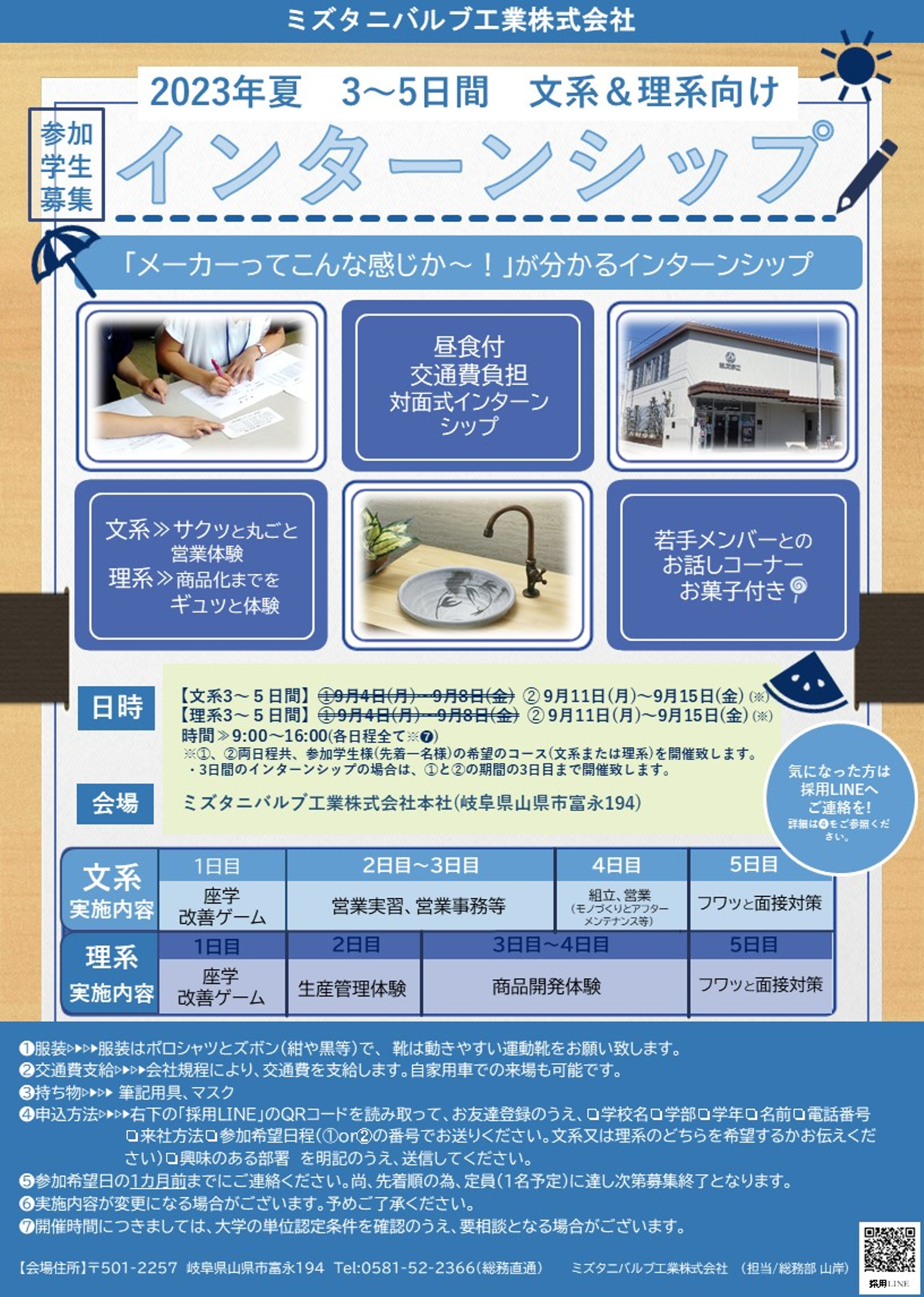 最後に当社のインターンシップの1DAYと5DAYSご案内します。
