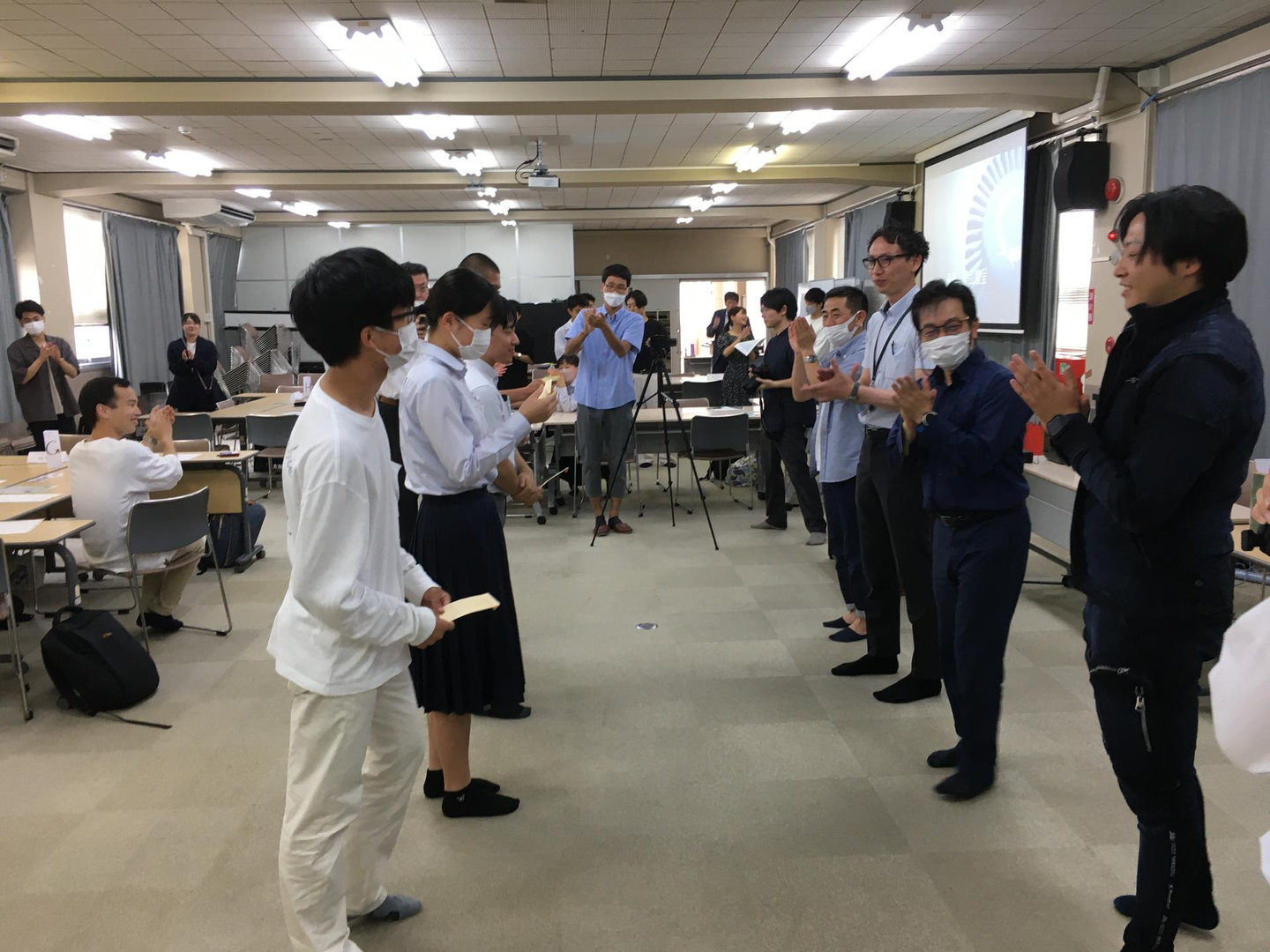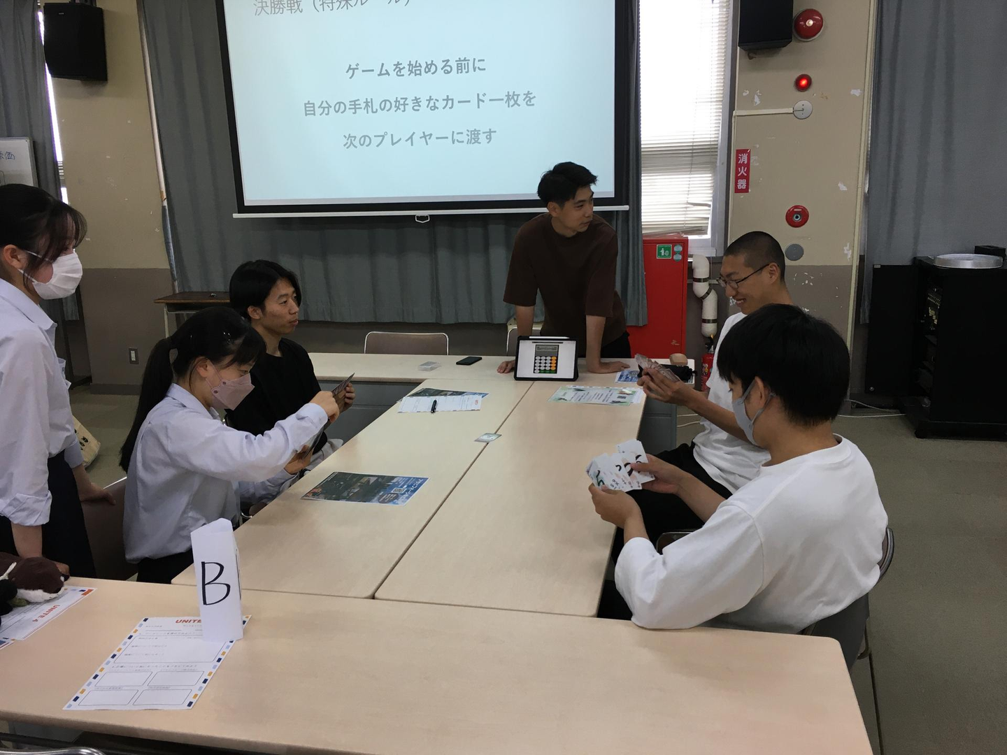 はじめに、アイスブレイク。運営スタッフが考えたオリジナルカードゲームを使い、大学生・高校生・社会人とグループごとに楽しみました。8つのグループに分かれて、順位競い、各グループ1位通過 2位通過の決勝まで行いました。上位入賞者には賞品も配られました。