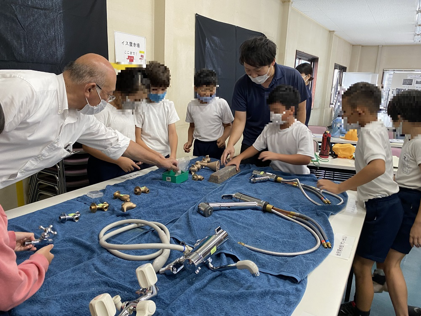 それぞれの部品を組み立てた後に、水没試験・通水試験・耐圧試験を行っている様子を見学していただきました。