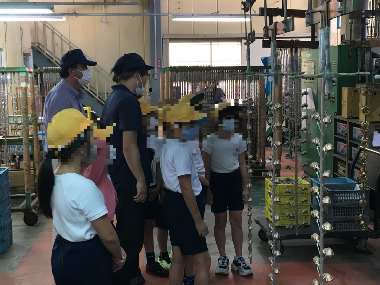 メッキ前品がメッキ自動プラントに通ることで、メッキが付けられ完成品となる様子を実際に見ていただきました。