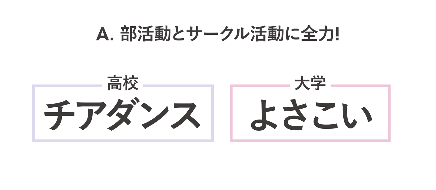 高校時代はチアダンス、大学時代はよさこいに打ち込む。