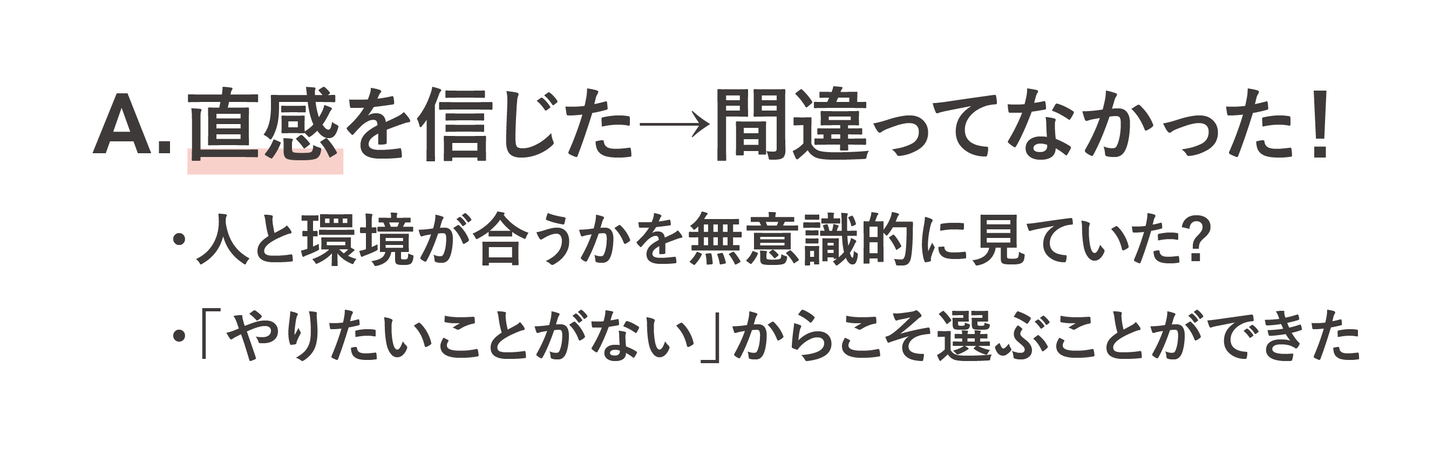 ーー直感で選んだことで、入社後に後悔しましたか?