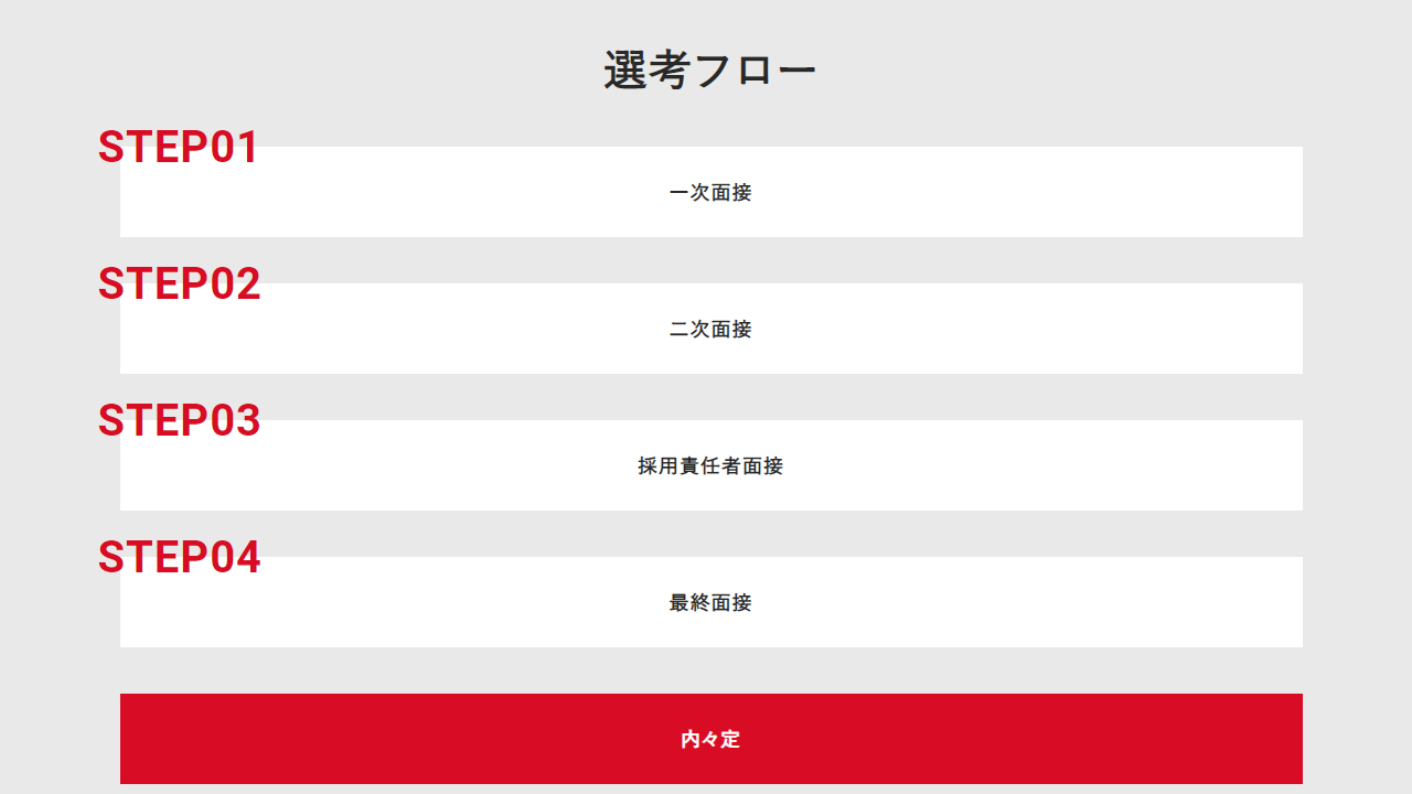 22卒の場合、内々定までに原則4回の選考を実施しています。
