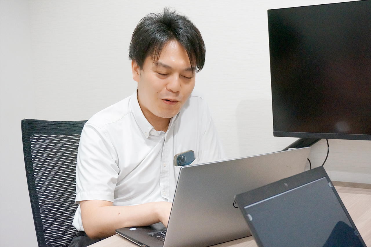 自社と社外オフィスを行き来しつつ、自社システムの開発とチーム運用管理を担当しています。