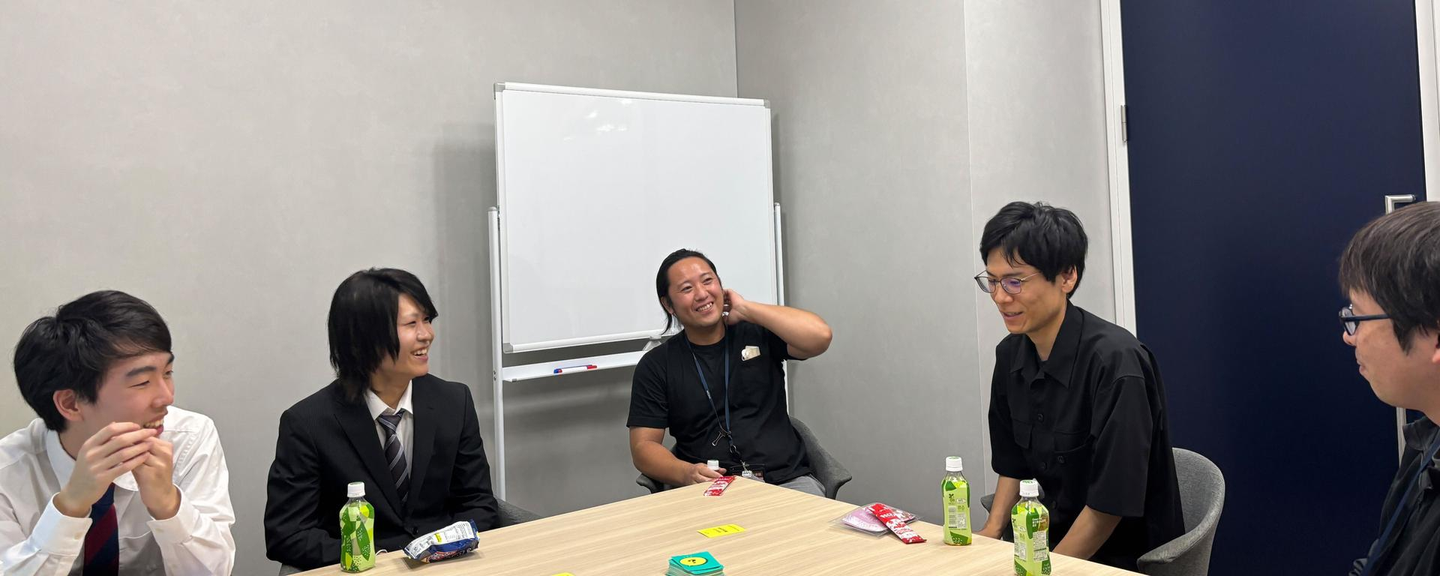 まずはアイスブレイクとして、社内のボードゲーム部に紹介してもらった自己紹介ゲーム「佐藤です。好きなおにぎりの具は梅です。」に挑戦!お題に沿って自己紹介を行った後に、早押しで回答するこのゲームは、皆さんの意外な一面が知れて盛り上がりました。