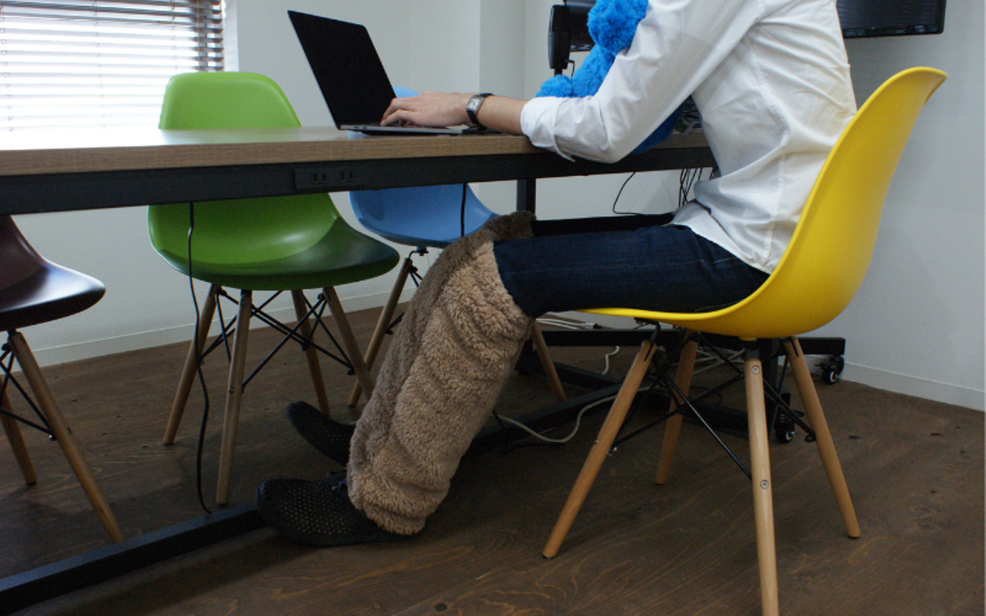 執務スペースでの宮田の席が窓際ということもあり、足元が冷えやすいこの時期は重宝するようです!