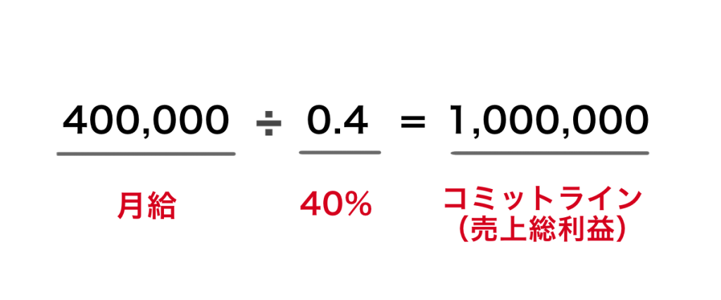 MOLTSでは、希望する給与に対して「コミットライン」という、自分のPLで最低限組み立てるべき売上総利益が設定されます。売上総利益の40%が、固定給として支給される仕組みです。