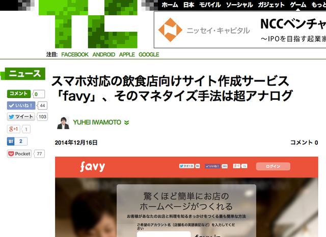 techcrunchさんにfavyを取り上げて頂きました!
