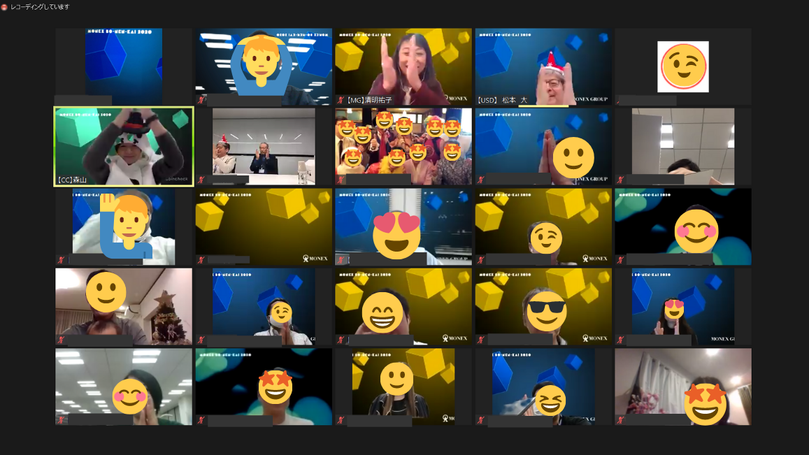毎年オフィスに隣接する宴会場を借りて大々的に開催していたのですが、今年はコロナ禍でそれも叶わず…。一年の労をねぎらわないと2020年終われない!ということで、今年は初のドキドキ!オンライン開催となりました。