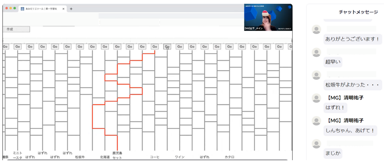 ちなみに最終的にはあみだくじで受賞者を決めるというなんともアナログな決勝戦となりました。0.5秒で結果が分かるハイパー爆速あみだを使ったのでサクサクでした。