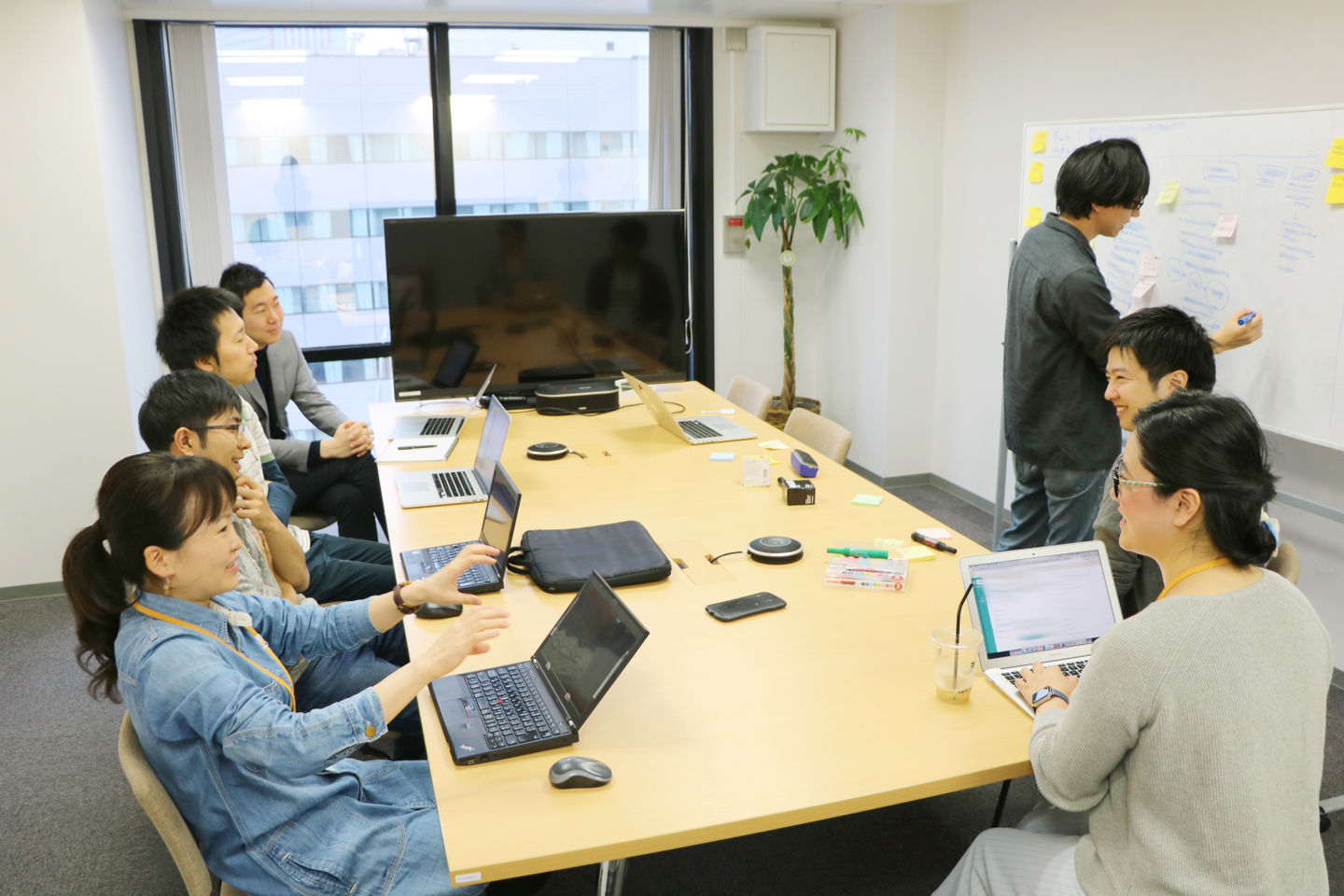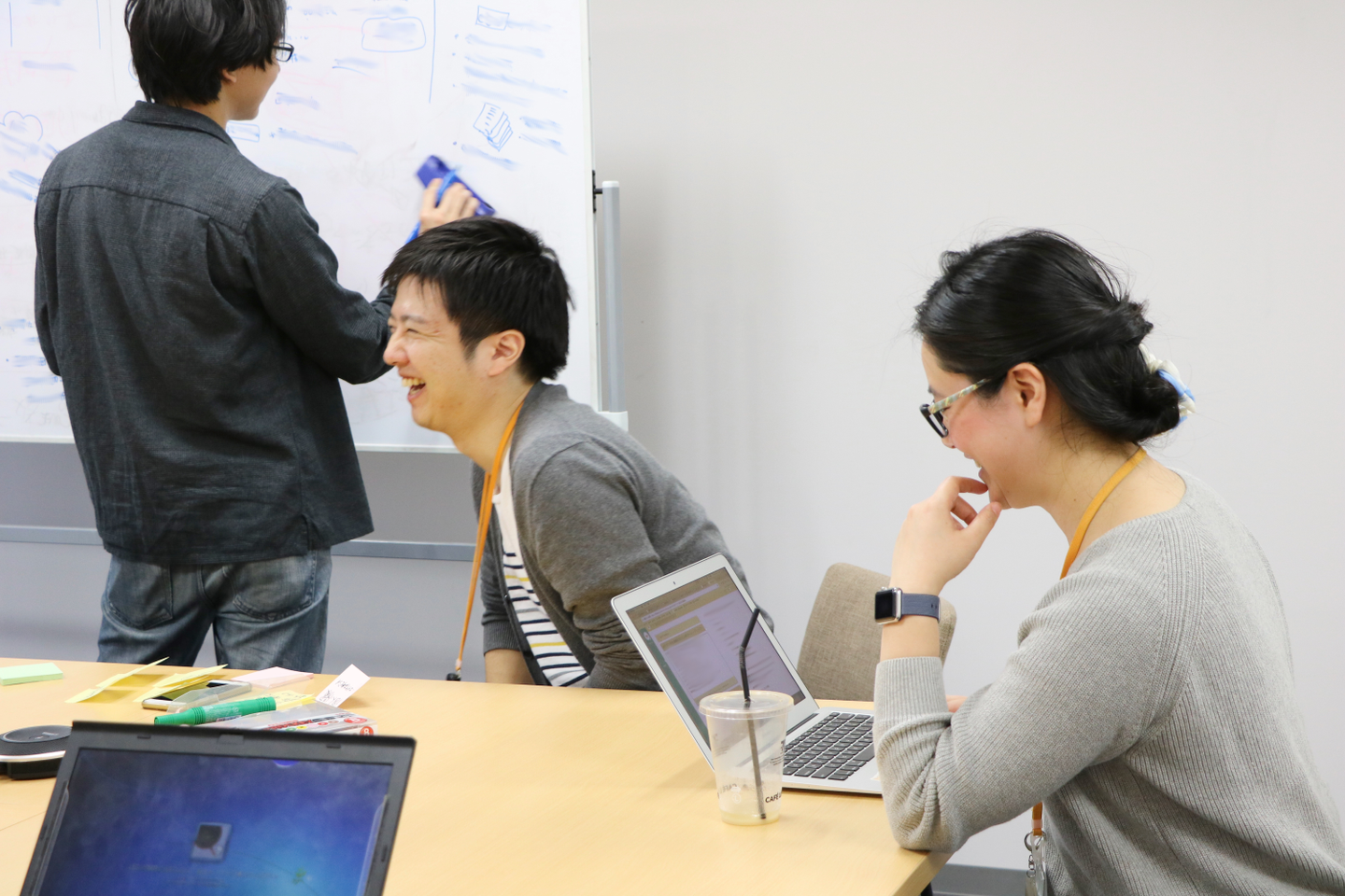 (その奥ではエンジニアの渡邊さんが弾ける笑顔ですが、こんな感じで終始、和気あいあいとした雰囲気でワークショップは進んでおりました)