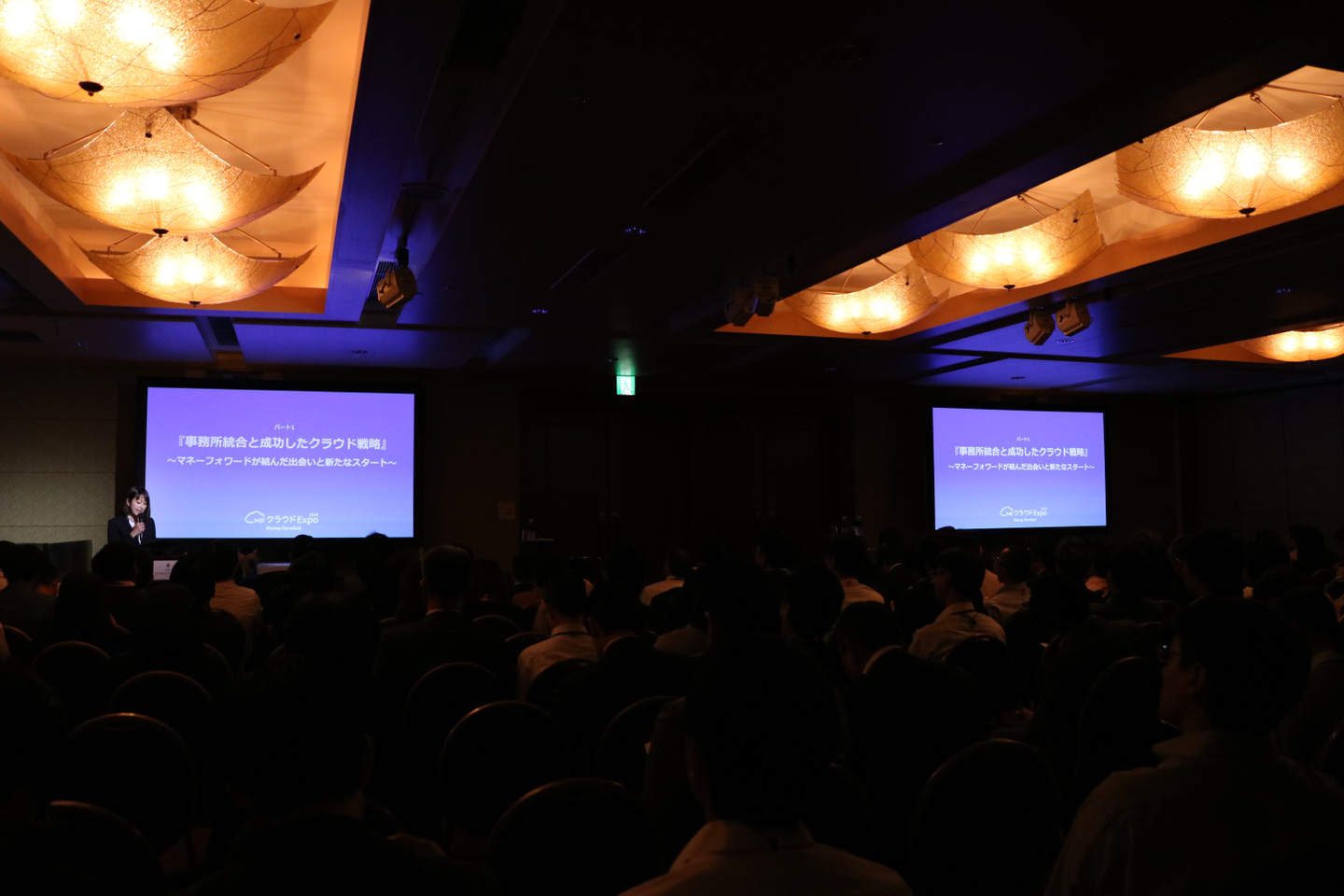 中小企業様向けのコンテンツの他、中小企業を支える士業の方々のセッションも開催しました。今回、マネーフォワードとの出会いを通じて事務所統合に至った、税理士法人アーリークロス様にご参加いただき、事務所統合の経緯や裏側などをお話しいただきました。