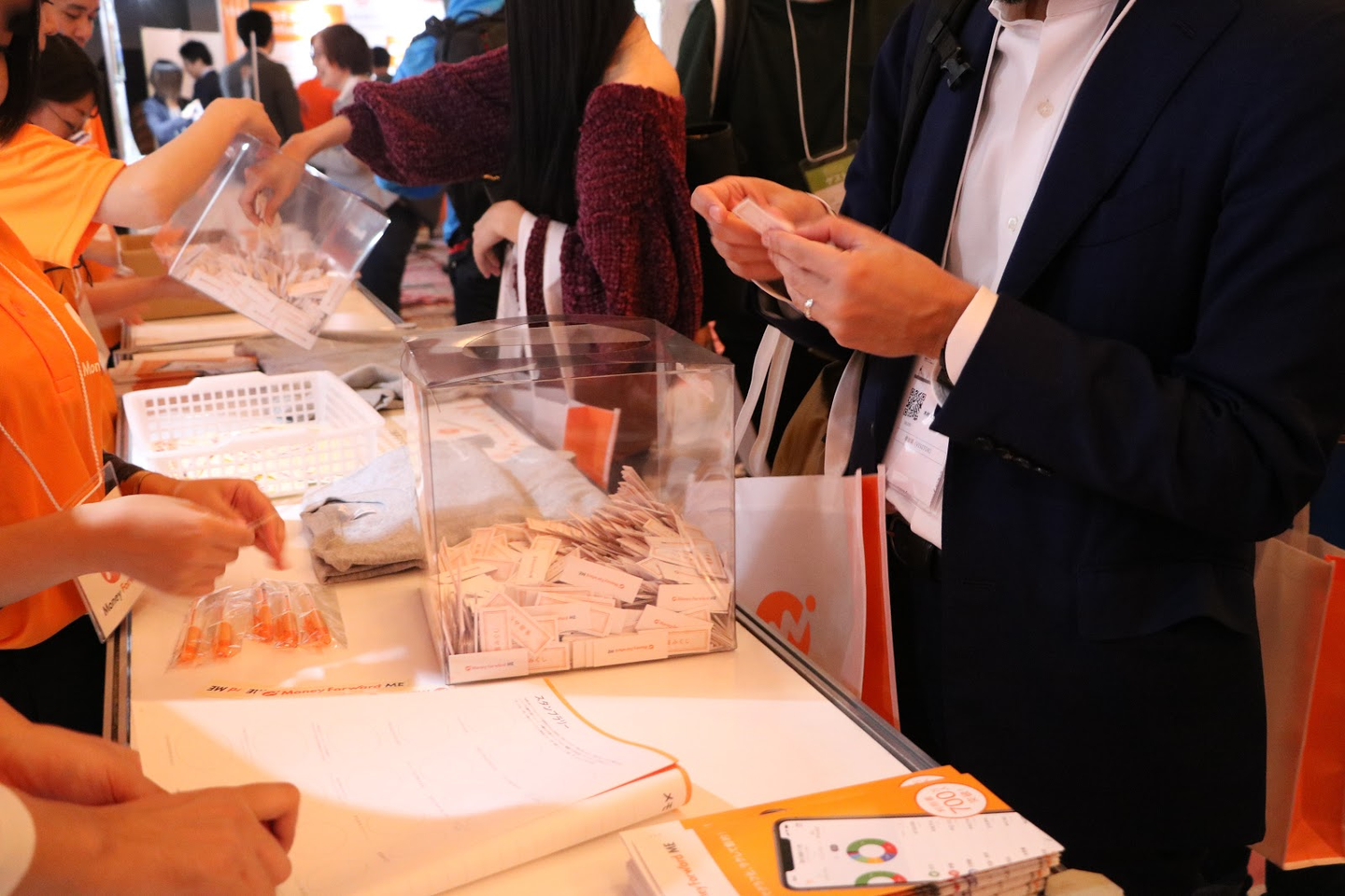 今年の当社ブースでは、「金運おみくじ」と題して、お金にまつわる言葉が記されたおみくじを用意しました。今年の運試しとして、多くの方に立ち寄っていただきました。