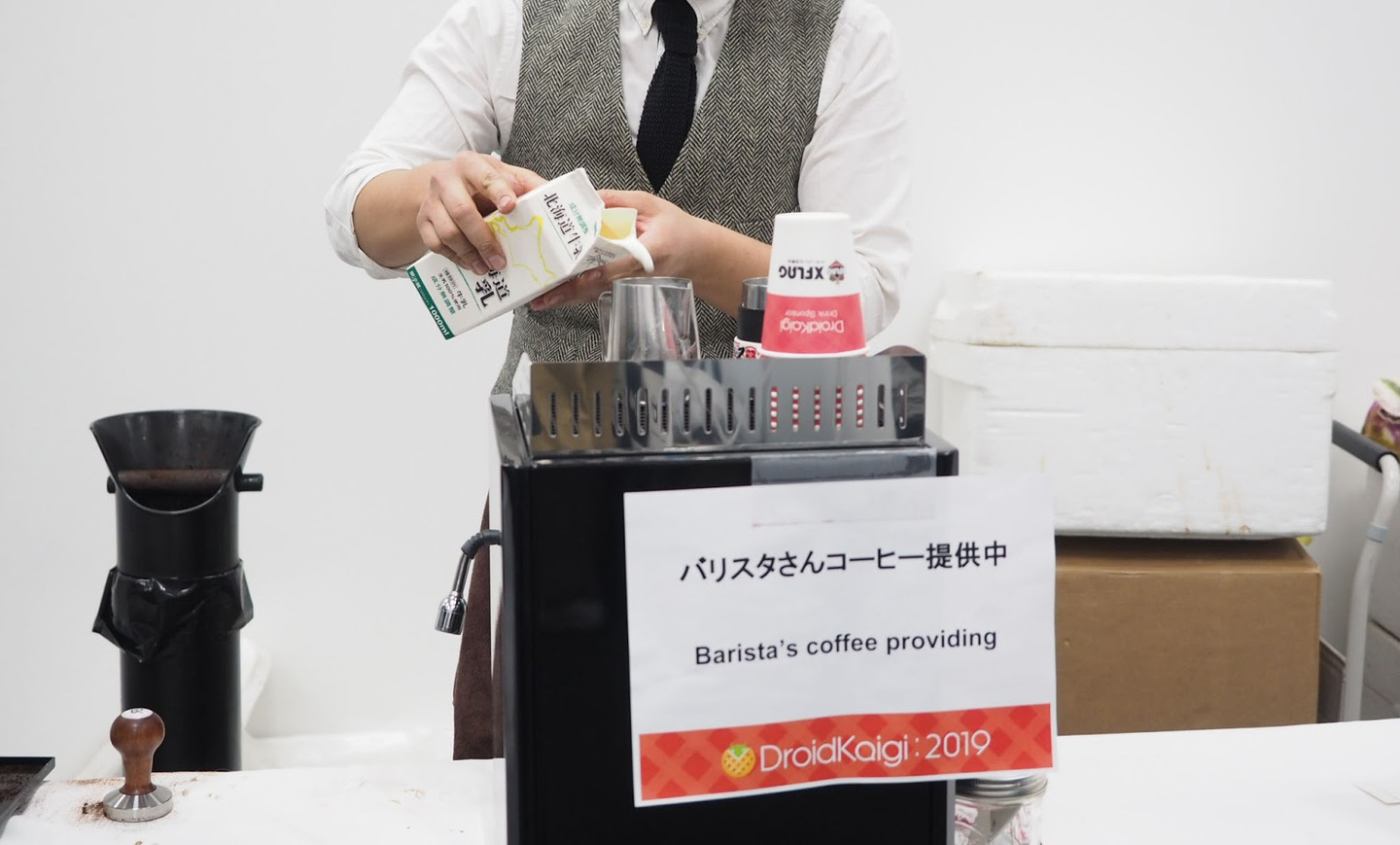 ブースの奥ではバリスタさんによるコーヒーが提供されています!セッションとセッションの間の時間には、行列が出来ていて、大人気!