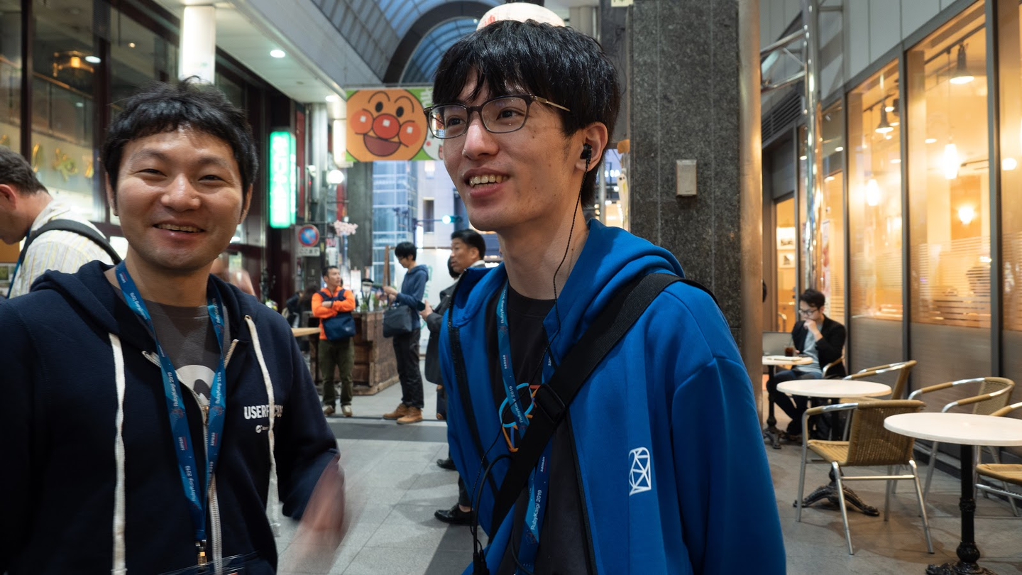 RubyKaigiのチーフオーガナイザーで、当社の技術顧問でもある松田氏(@amatsuda、写真左)と当社の執行役員として福岡拠点を担当する黒田(@nkuroda、写真右)とパチリ。