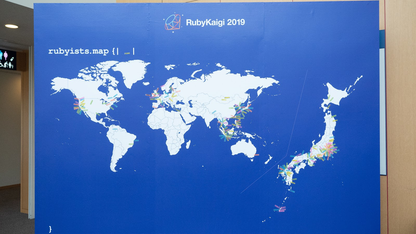 すぐ隣にはrubyists.mapがありました!参加者がどこから来たのかを付箋で貼っているのですが、日本だけでなく、世界各国から多くの方がRubyKaigiに参加していることがよく分かります。
