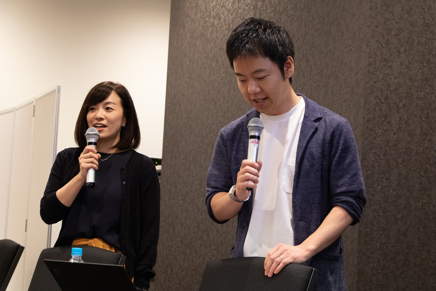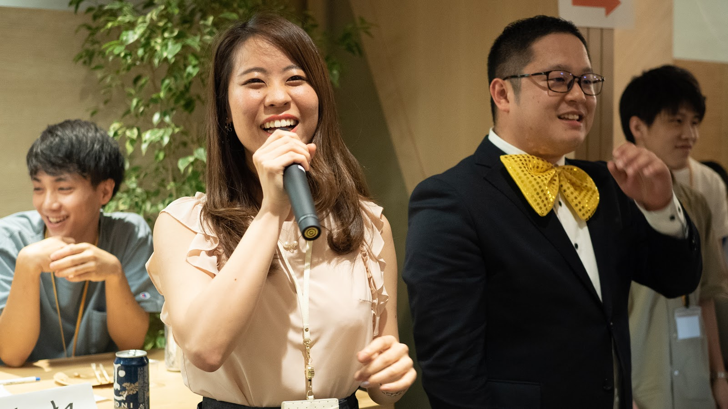 今回の司会は、広報の柏木と人事の山田が担当致しました。関西出身の二人によるアイスブレイクで会場が温まった状態でスタート。