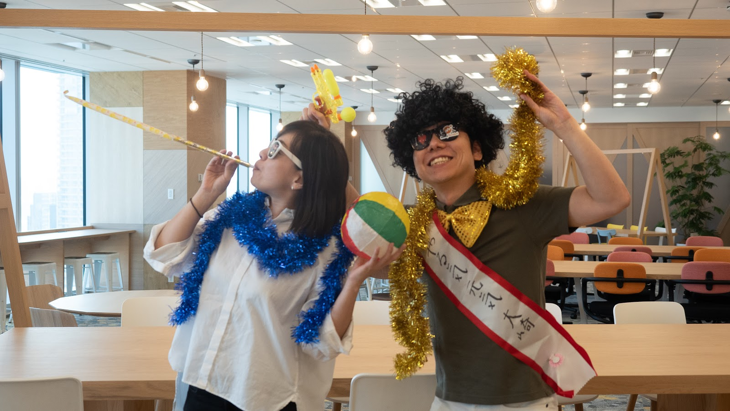 全社総会が終わった後は、オフィスに戻って懇親会です。今回は4月に入社した新卒のメンバーがお楽しみコンテンツとしてクイズを企画してくれました!なんとこのためにプロダクト開発までした気合いの入りよう!