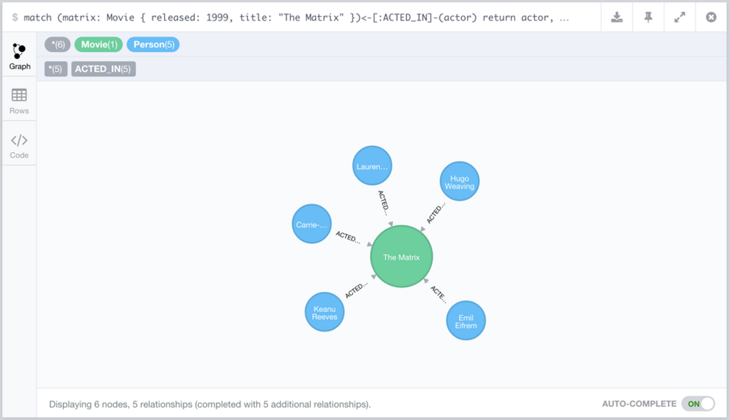 上記コマンドを実行後、表示されるチュートリアルにそってデータをインポートすると、映画に関するグラフが作られれます。
