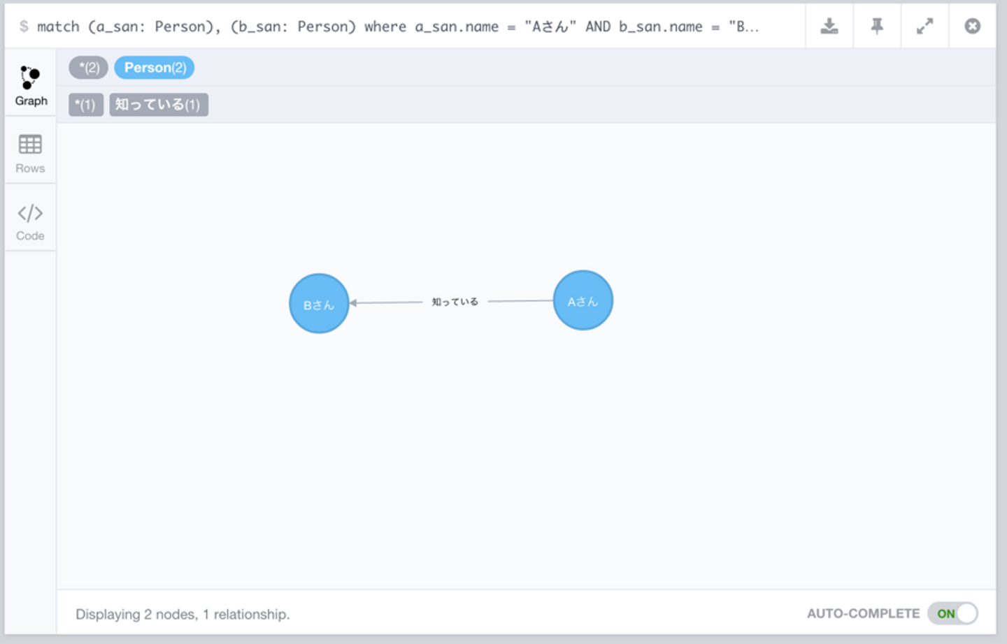 MATCH (Aさんを知っている人:Person)-[r:知っている]->(a_san: Person { name: "Aさん" })