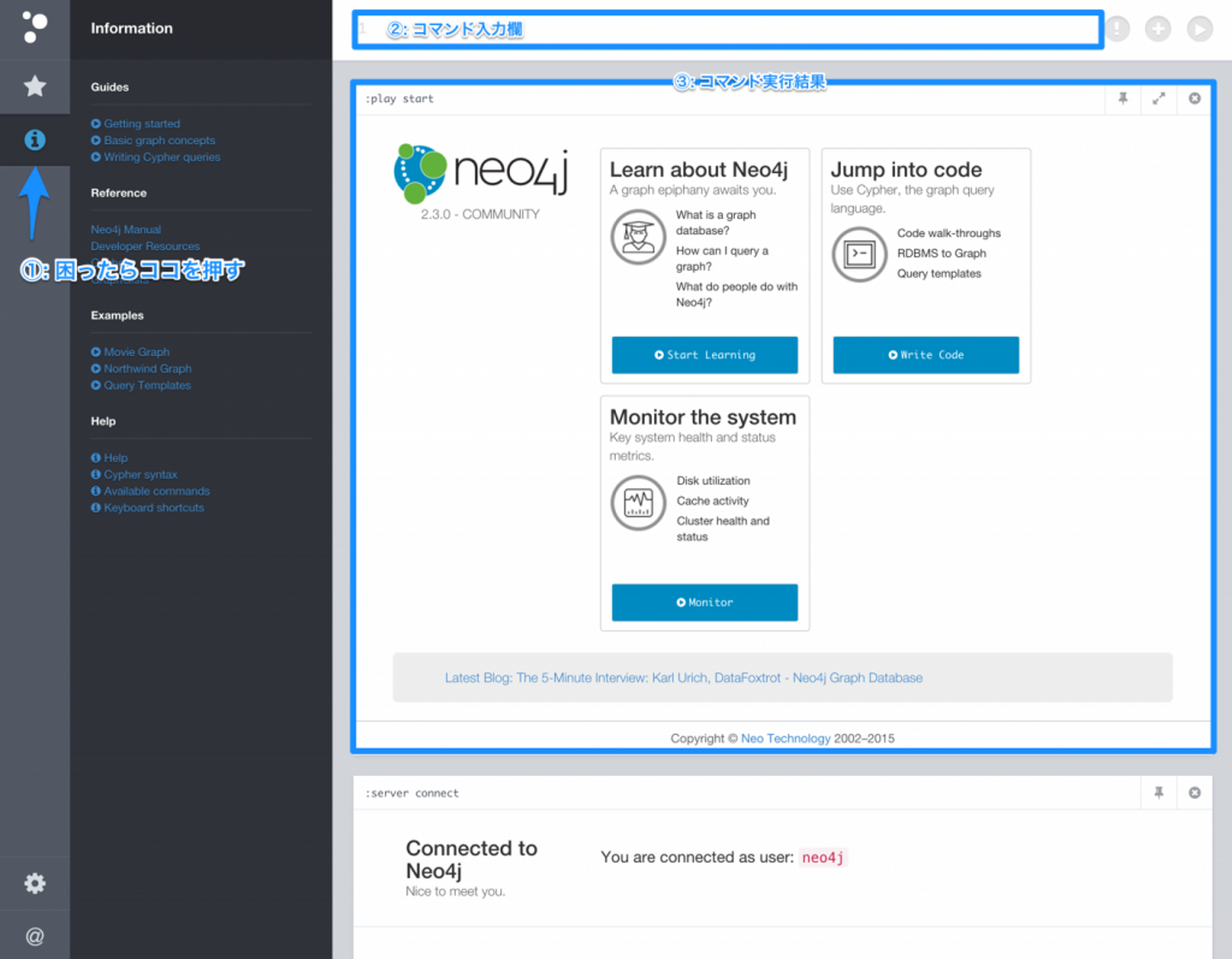 起動と同時に管理ツールが http://localhost:7474 立ち上がります。