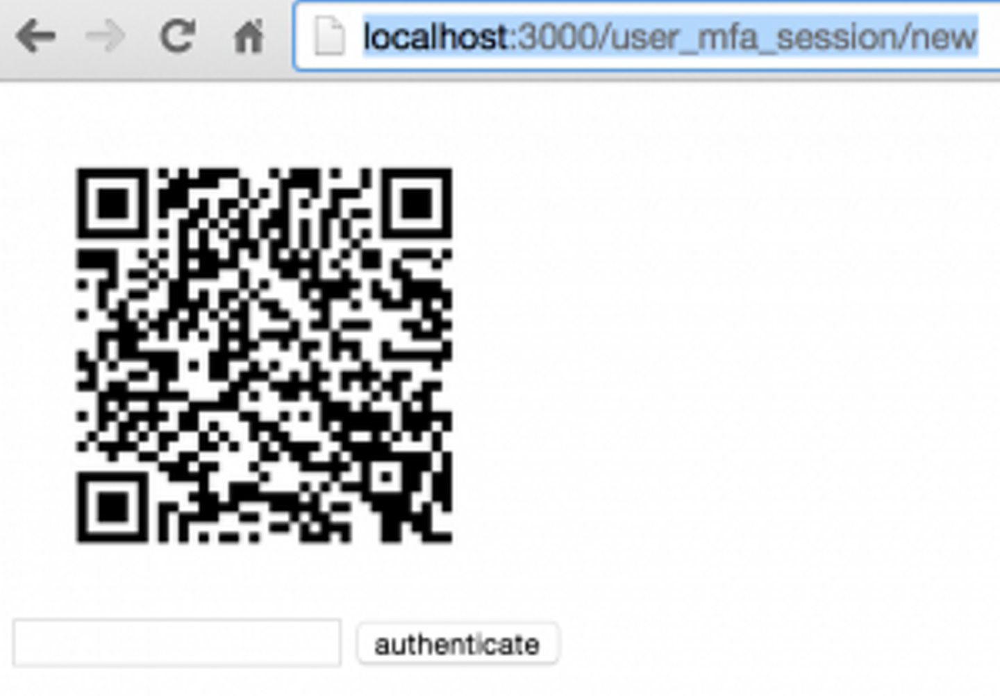 準備が整えばRailsアプリを起動して http://localhost:3000 にアクセスすると http://localhost:3000/user_mfa_session/new へリダイレクトされてQRコードと入力フォームが表示されます。