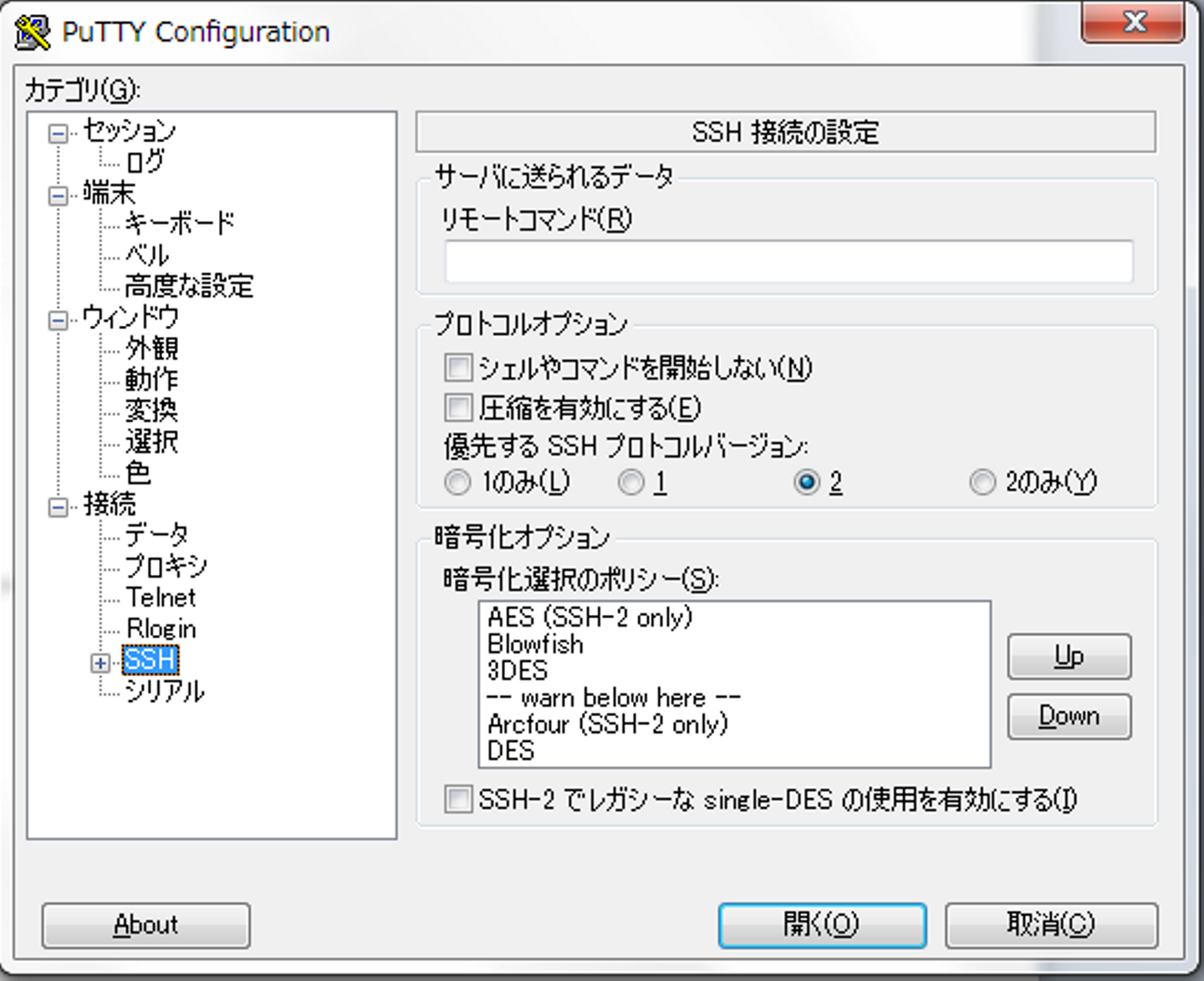 「リモートコマンド」を設定するとセッションを開いたときに実行されます。