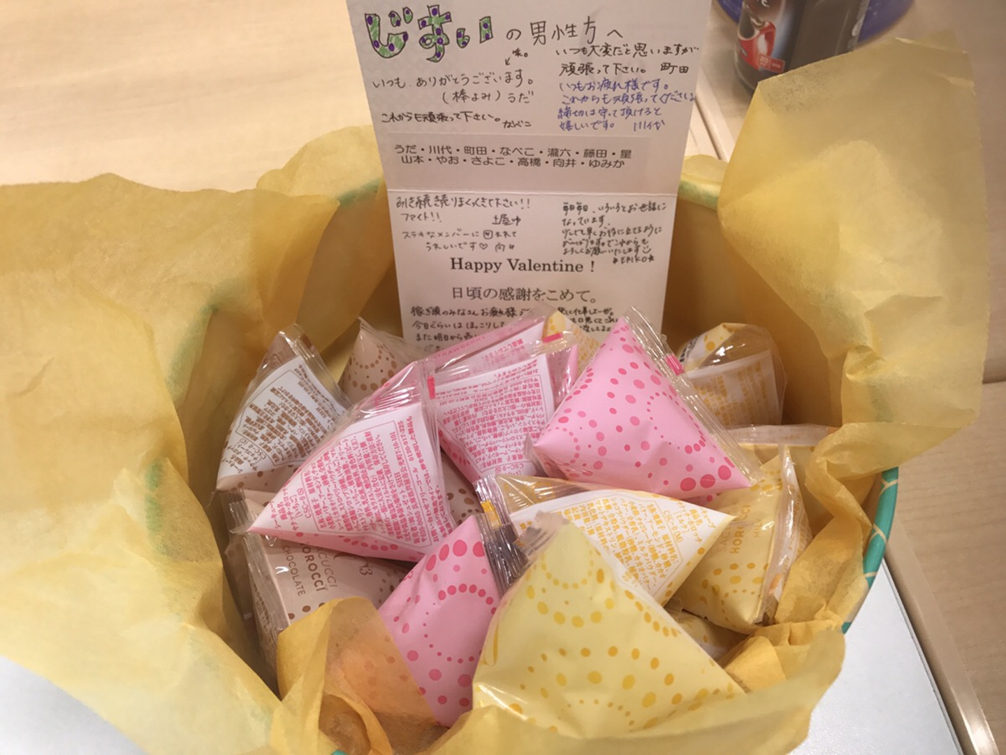 そしてこちらは昨年(2016年)のバレンタインの様子。1年前は全社からメッセージ付のクッキーをプレゼントしましたが、今年からは部署ごとに自由に!ということになりました。