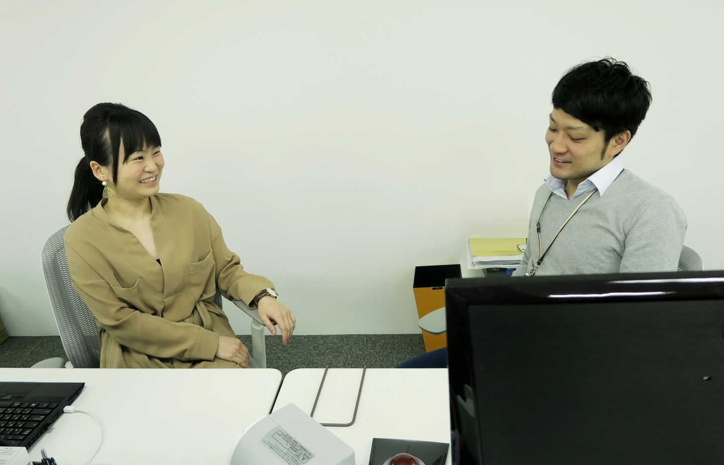 寺本:当時、高倉くんは大阪に住んでいたので、Skypeで面接したんです。高倉くんは自宅でPCの画面越しに、こちらは会議室で面接したんですけど、面接中にご家族が登場したりと予想外のこともありましたね(笑)。話してみて、当社の管理本部で活躍してくれそうだなぁと思って採用を決めました。